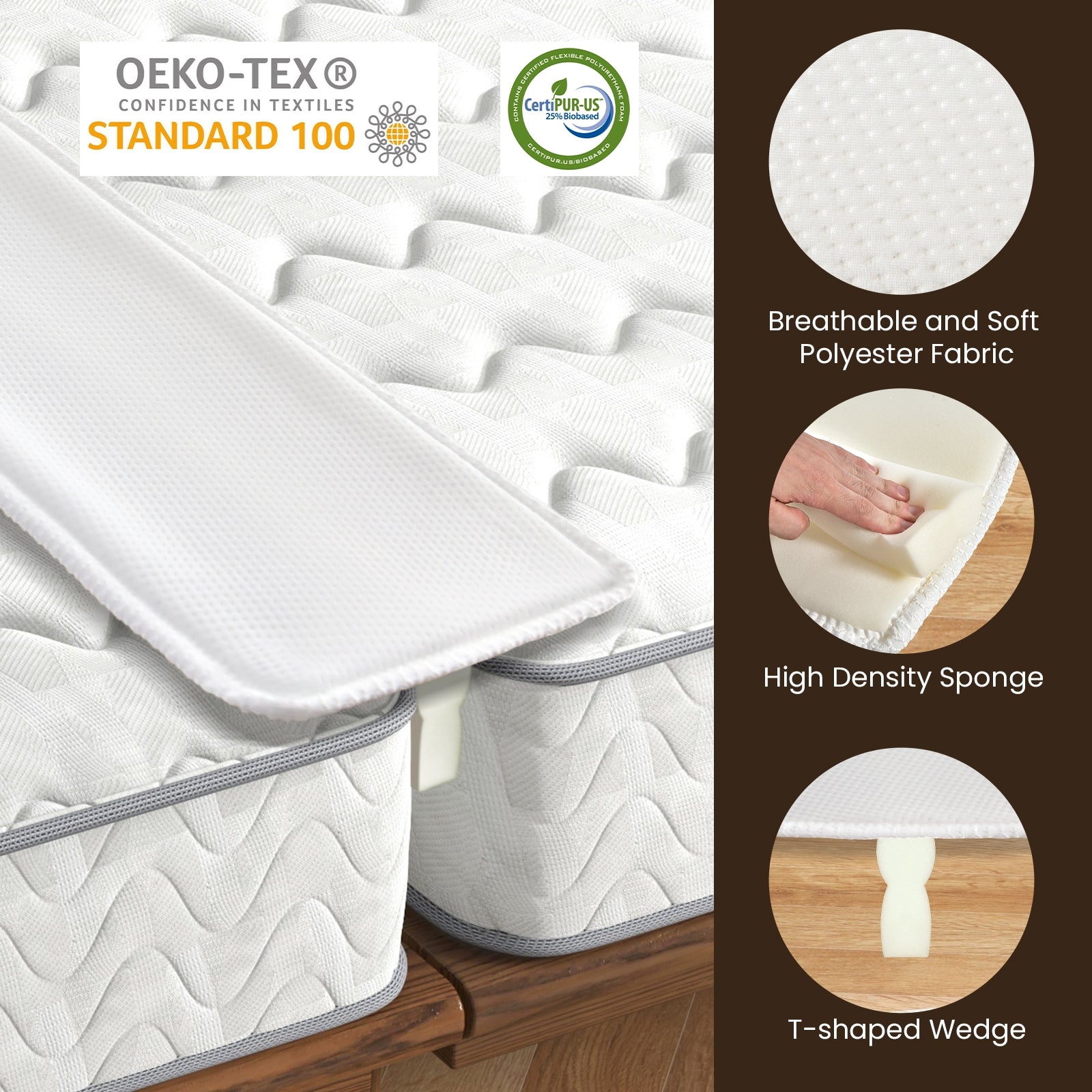 ● Superior Comfort: The bed bridge features a breathable and soft polyester fabric top surface for comfortable sleeping. Additionally high-density sponge mattress extender with OEKO-TEX Standard 100 certification allows you to use it with comfort and confidence.