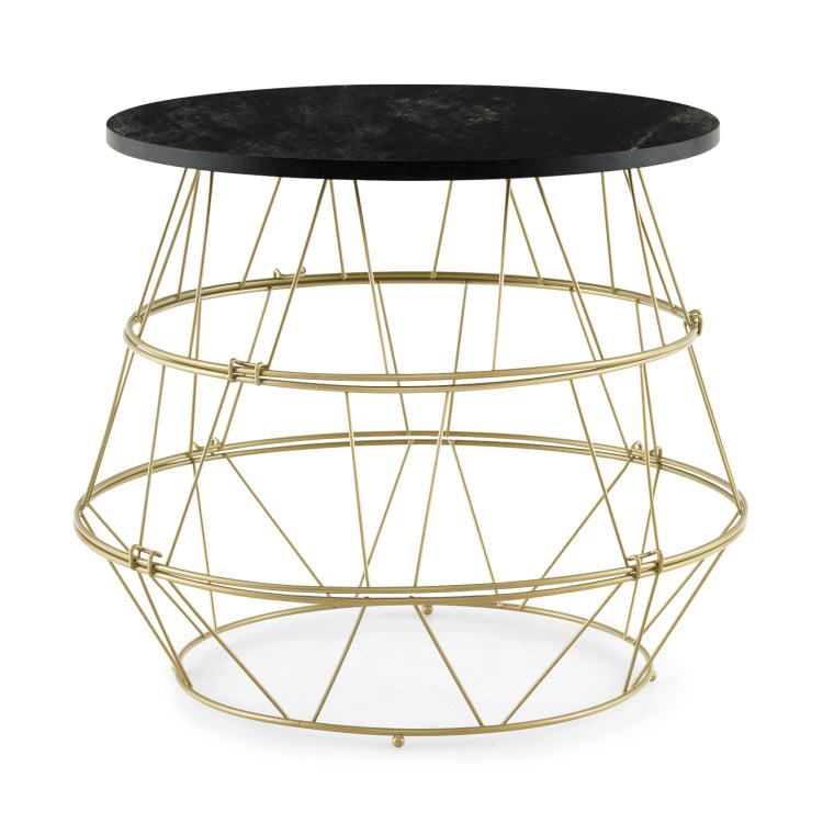 ● Functional Side Table: Round faux marble top with removable design for storage supported by a durable gold metal frame for stability and style.
