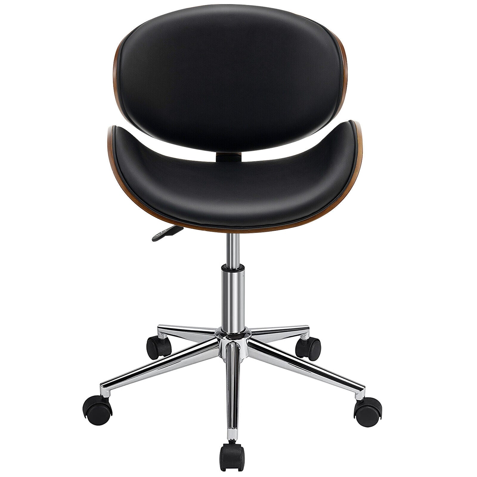 Featuring a mid-century design the desk chair also becomes a modern decoration to your home. Supported by premium bentwood the wing back and curved seat come with ergonomic curvatures for better fatigue relief and comfort. Furthermore the executive chair is upholstered with sponge and wrapped with PU leather. Both materials are soft and breathable getting rid of body stuffiness. Designed for people of different heights the office computer chair is height adjustable (30"-35"). Together with a 360° swivel seat and 5 smooth nylon casters a free working space where people can conveniently talk and move around becomes true. It can also be your study reading chair makeup chair meeting chair reception chair and more.