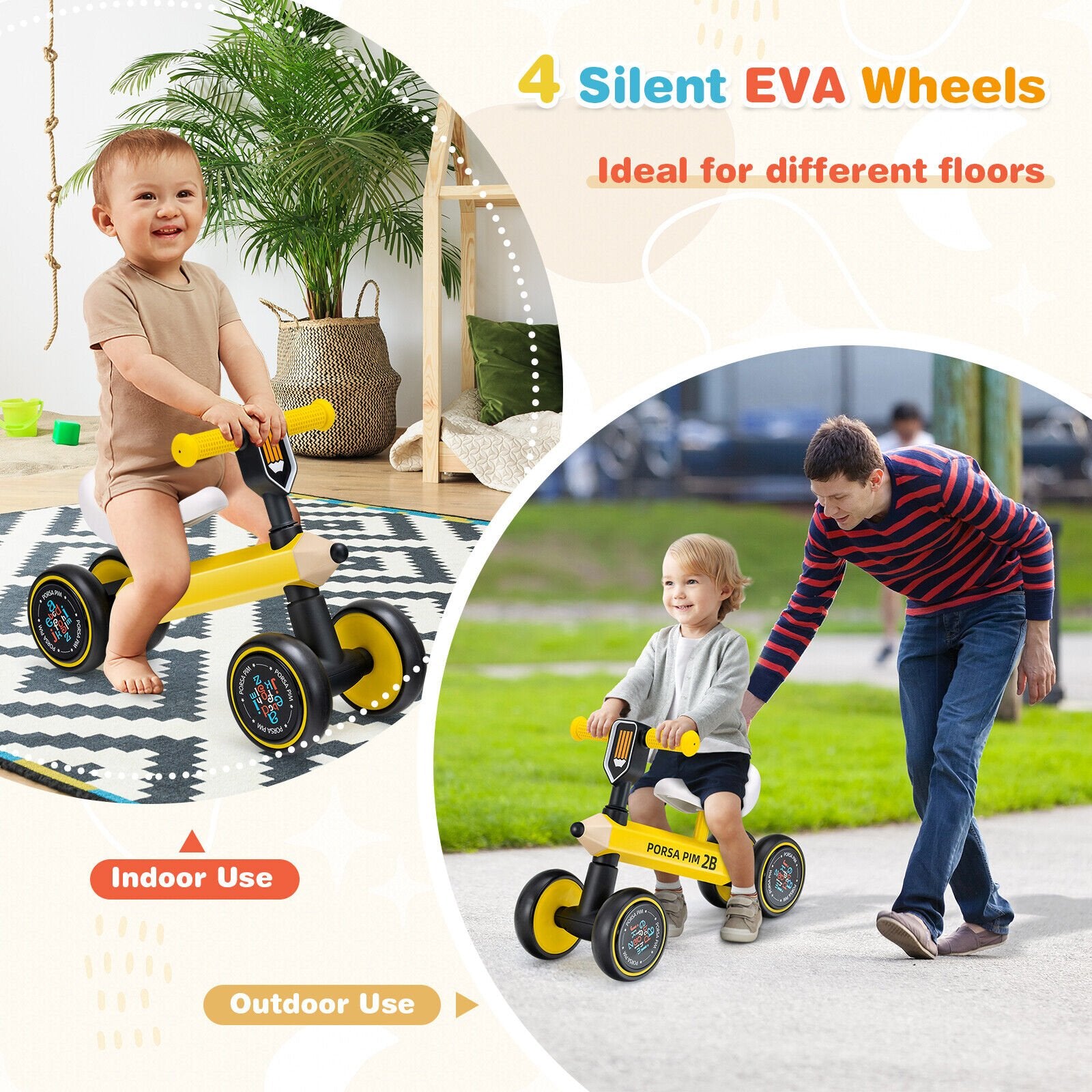 ● Silent EVA Wheels for Wide Use: Designed with 4 premium EVA wheels our balance bike ensures smooth riding and excellent wear resistance. The toddler bike is ideal for both indoor and outdoor use allowing kids to ride wherever they like. And the silent wheels won't disturb others when your kids enjoy the riding fun.