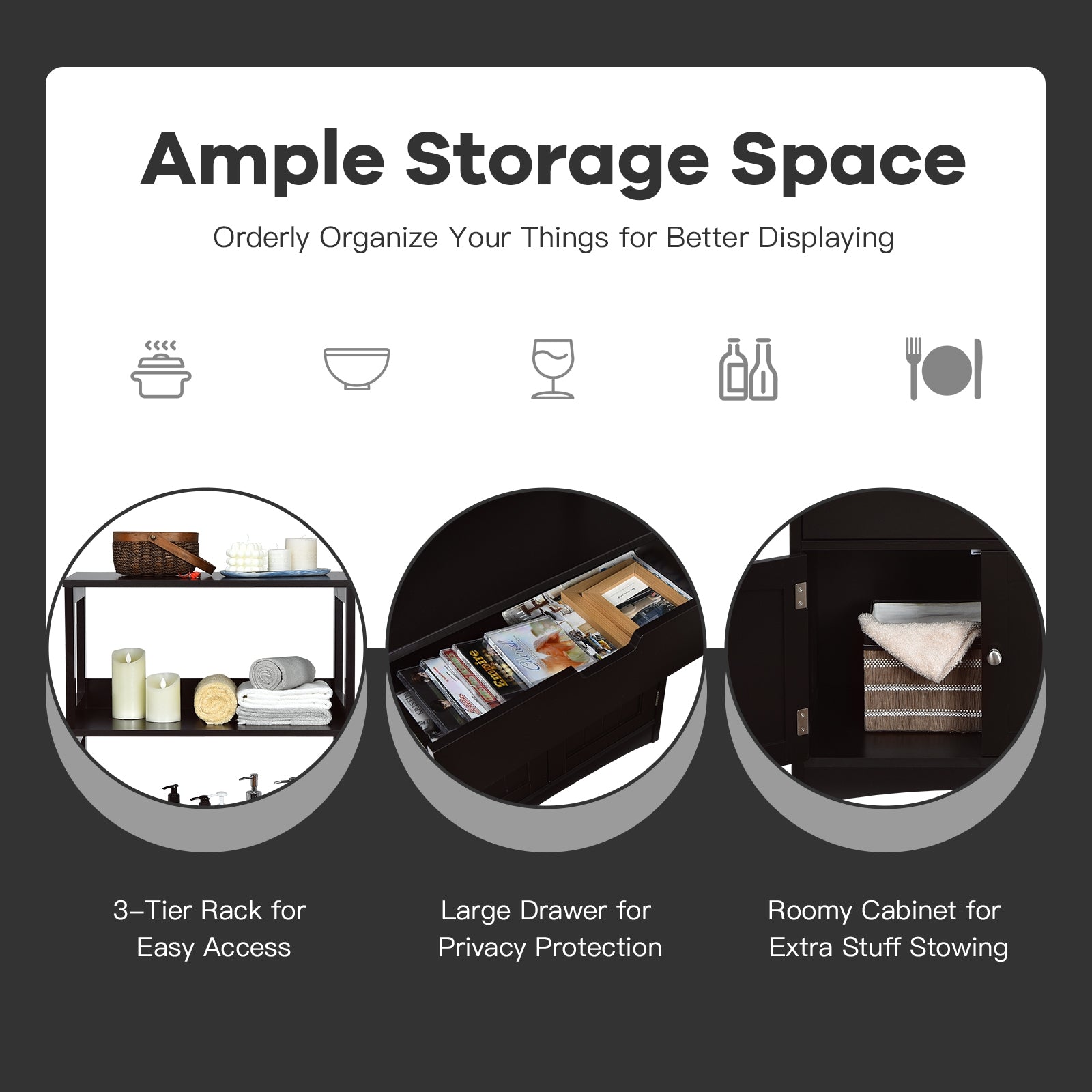 ● User-friendly Design: Equipped with an anti-toppling device this sturdy storage cabinet can be fixed to the wall for added security. And the drawer has a stopper inside so there is no need to worry about pulling out the entire drawer due to excessive force. Besides reasonable height and open design of the floor cabinet for easy access to the storage items.