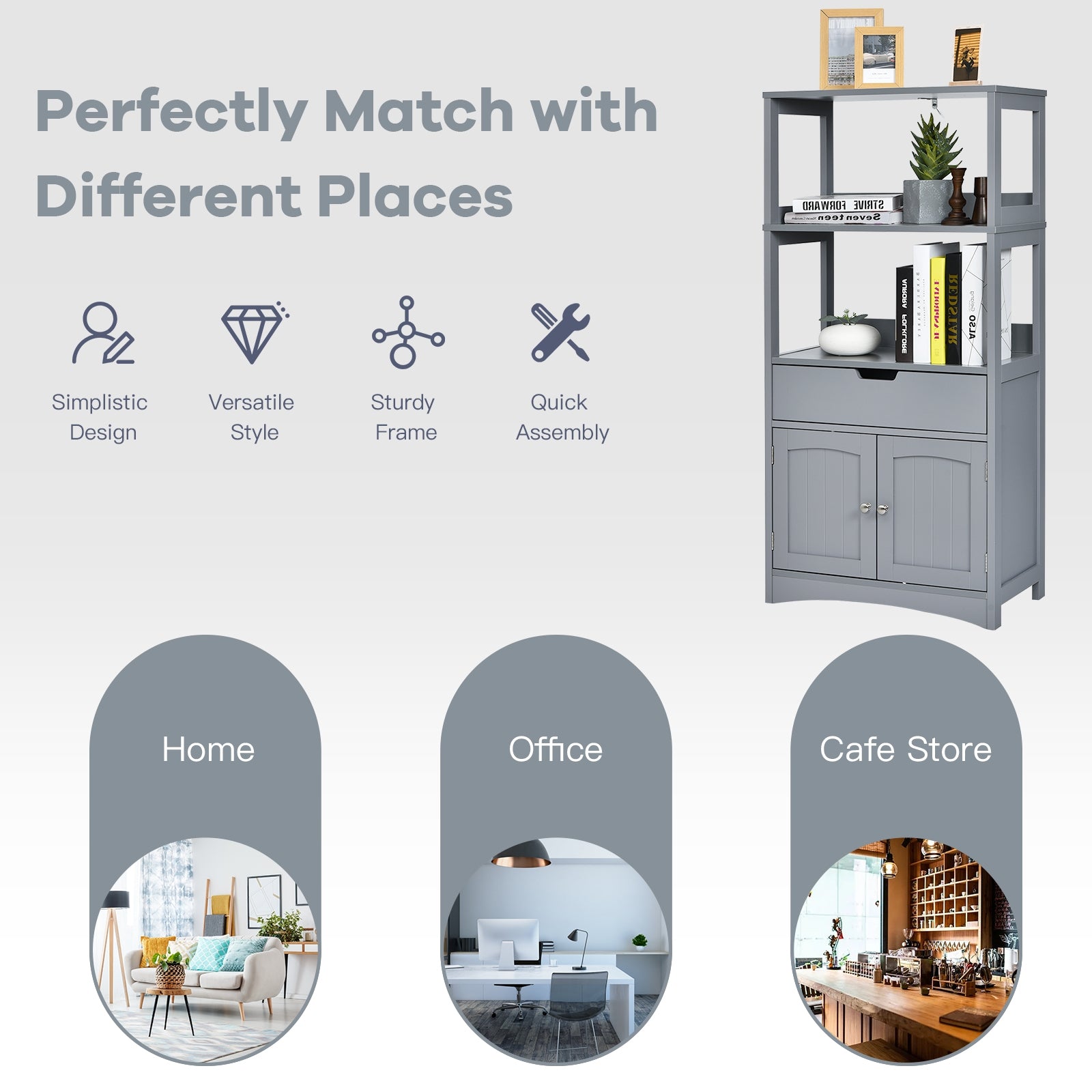 ● Quality Material for Durable Use: Made of high quality MDF and metal fittings this storage cabinet has a sturdy frame structure to ensure stability and durability. Besides smooth surface with premium paint the floor storage cabinet is waterproof and wear-resistant and allows it does well in environment such as bathroom.