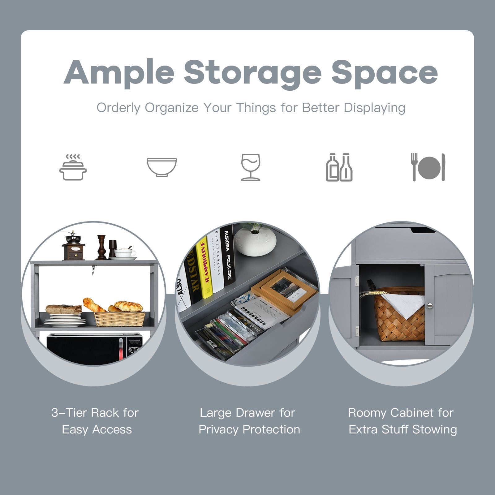 ● User-friendly Design: Equipped with an anti-toppling device this sturdy storage cabinet can be fixed to the wall for added security. And the drawer has a stopper inside so there is no need to worry about pulling out the entire drawer due to excessive force. Besides reasonable height and open design of the floor cabinet for easy access to the storage items.