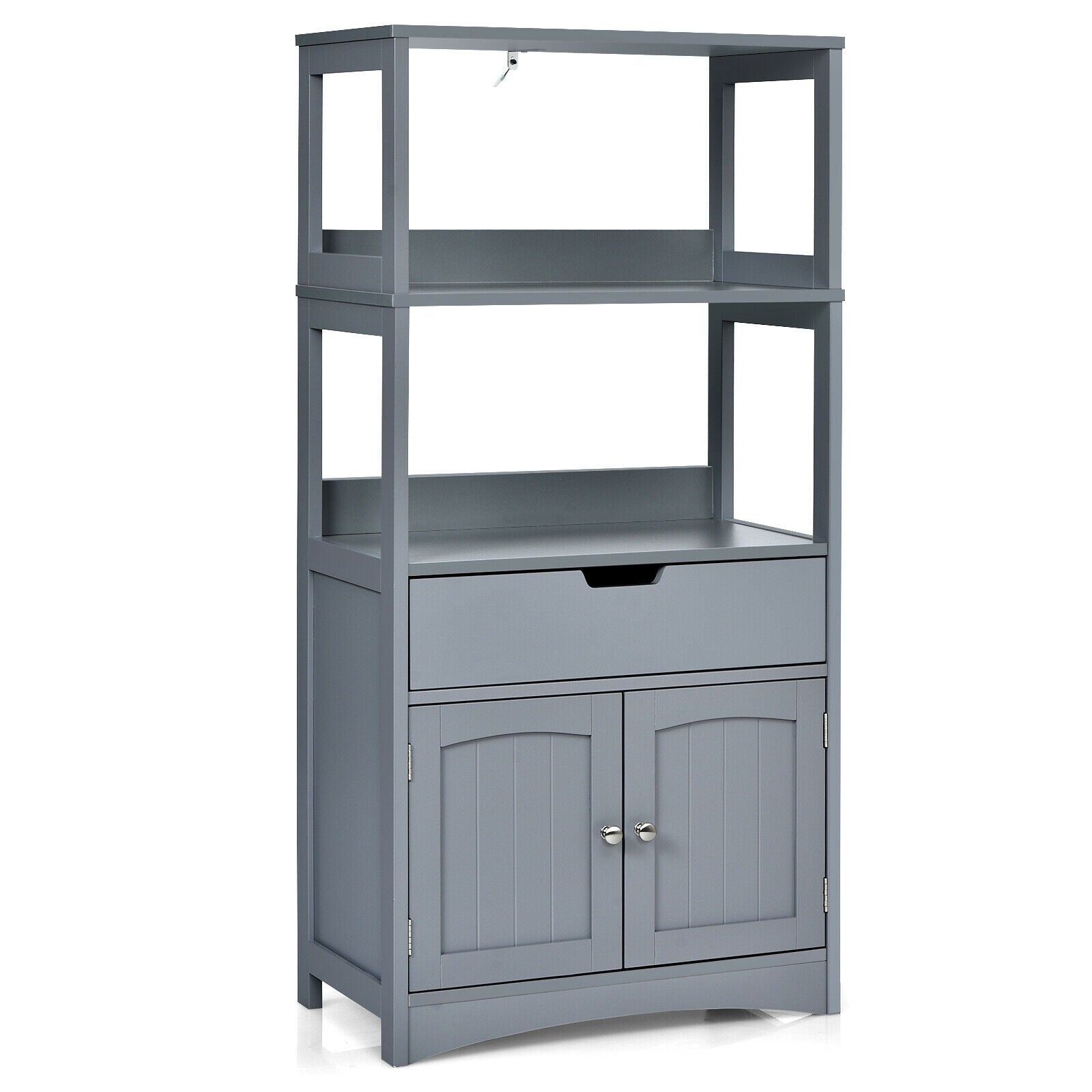 ● Abundant Storage Space: This storage cabinet can expand the storage space vertically in the home while occupying a small space. The open shelves at the top a sliding drawer in the middle and a cabinet below provide flexible storage options for your bath essentials and other items. A good storage solution for keeping your home organized.