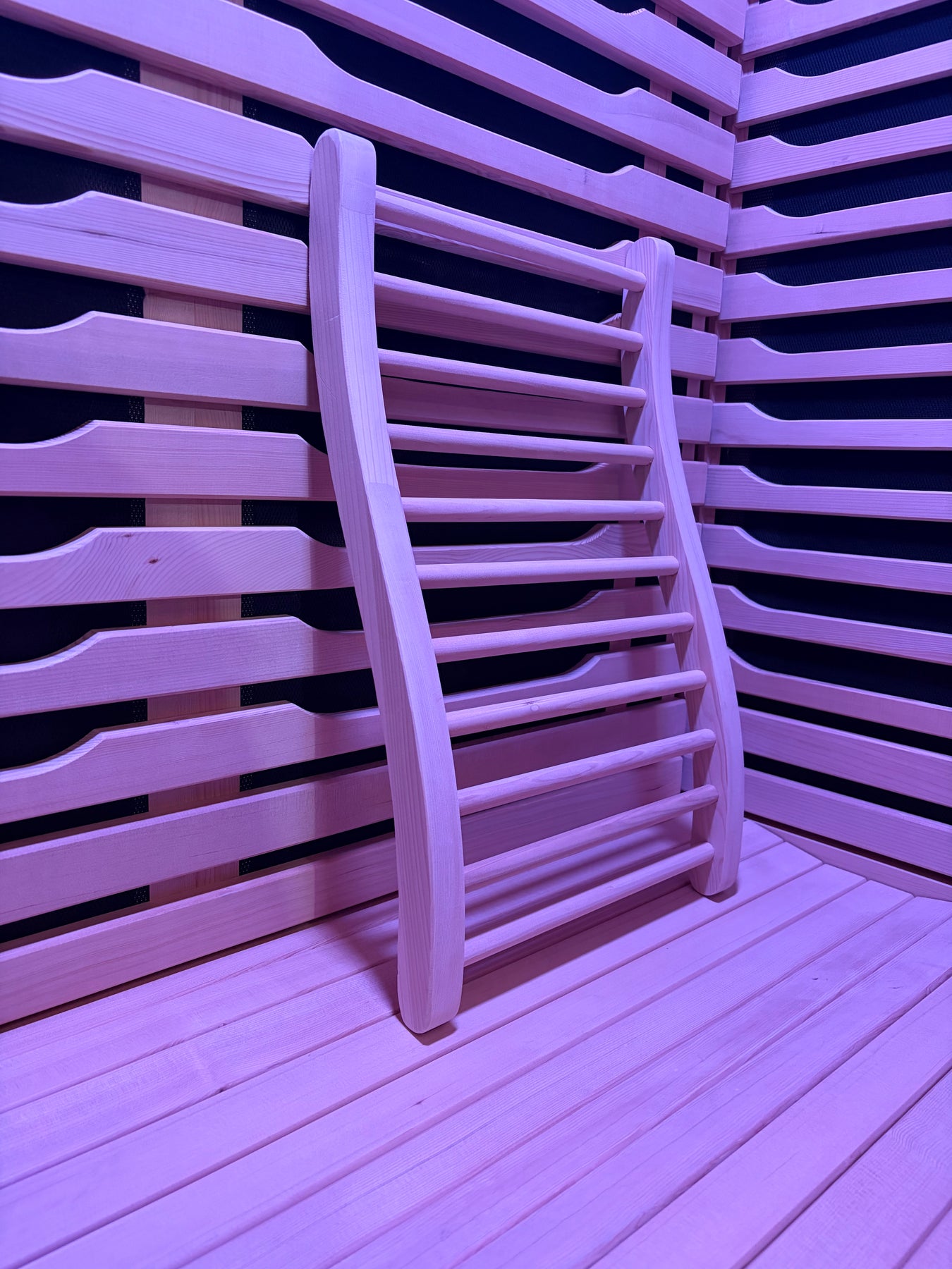 One of the best industry efficient Sauna, with 6 Full-Spectrum - 2 heaters on the back, 1 heater below the bench, 2 large Carbon Panel heaters on sides & 1 RED Glass heater in the front. Heats up & gets ready fast.