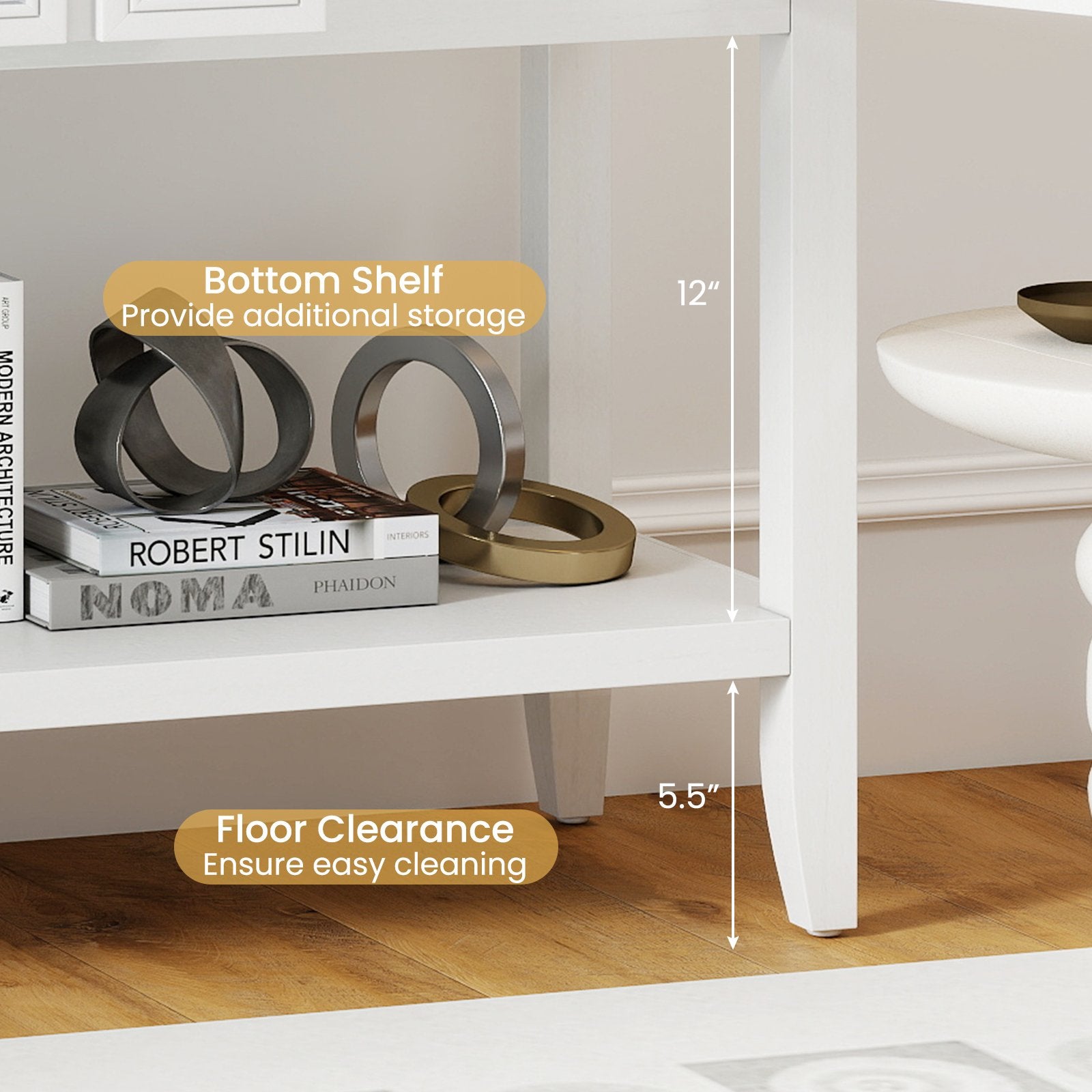 Spacious Storage: With a wide countertop 2 enclosed cabinets 2 smooth-operating drawers and a bottom shelf this entryway table keeps various items from dinnerware to baskets effortlessly organized.