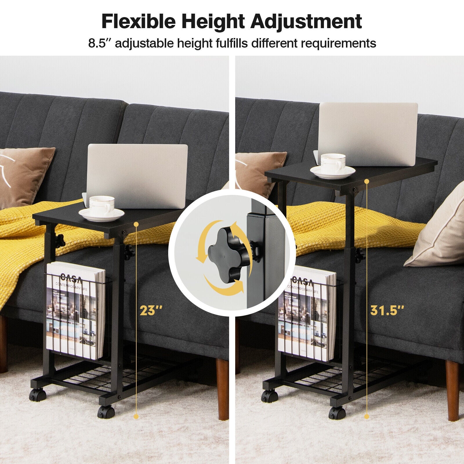 ● Flexible Height Adjustment: This c-shape end table features an ergonomic height adjustable design providing you with a fresh working environment to achieve optimal comfort. Through adjustable knobs the couch table can be easily adjusted from 23" to 31.5" based on individual requirements.