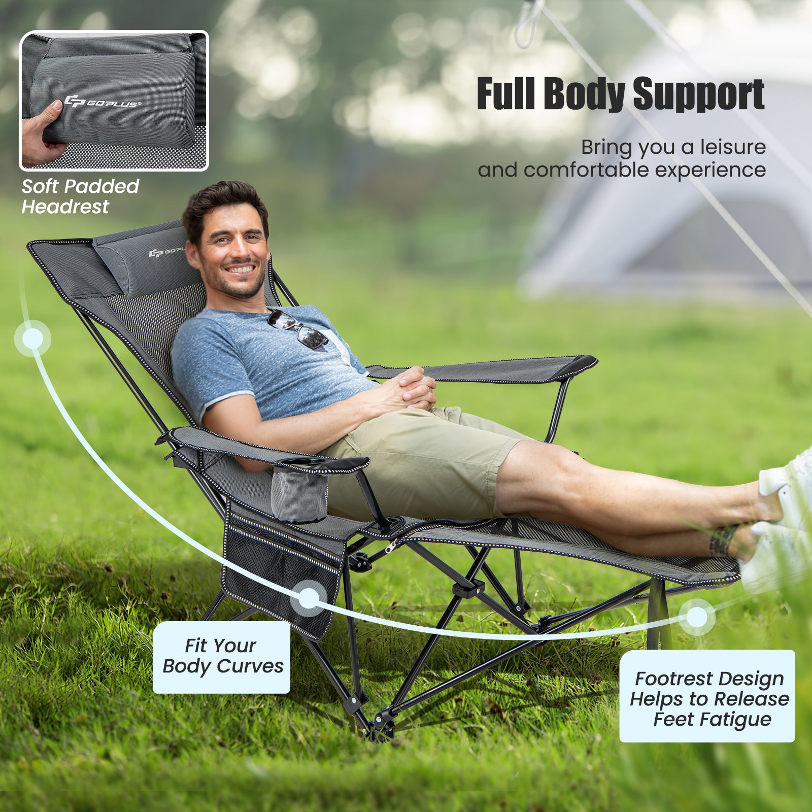 ● 2 in 1 Camping Lounge Chair: Featuring a detachable footrest design this camping lounge serves as both a recliner and a chair providing you with different seating options for any outdoor activity. Just unzip the zippered and pull up the bottom feet the footrest will be easily removed.