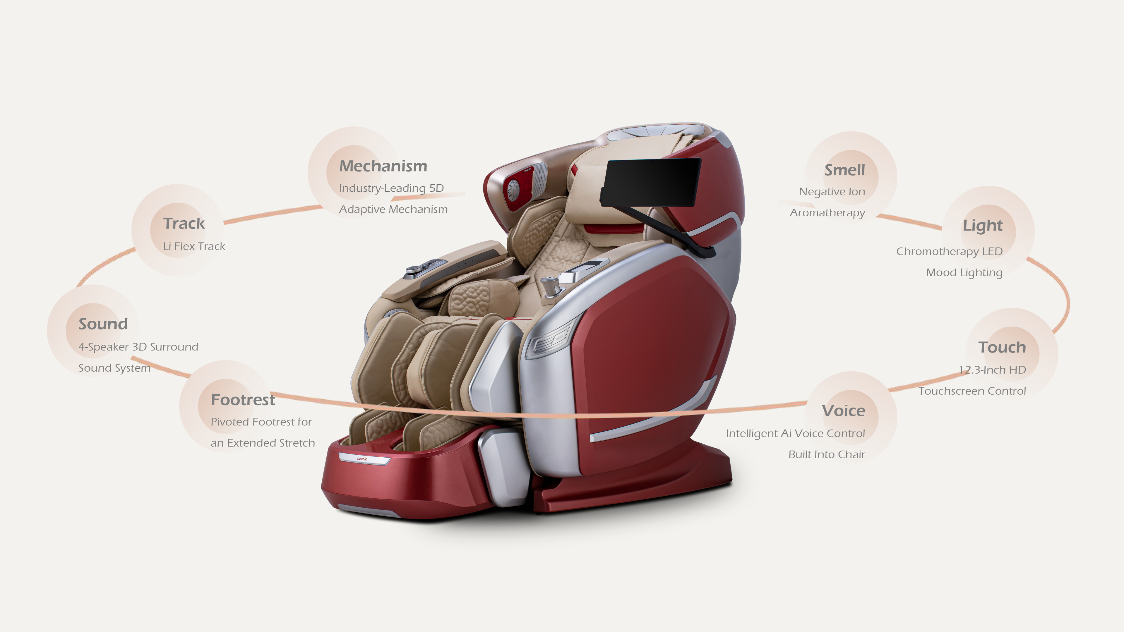 everything in a 5D massage chair, plus the addition of 27 precision pressure sensors. These smart sensor monitors in real-time how much force is being applied making sure the correct amount of pressure is applied to any part of your spine.