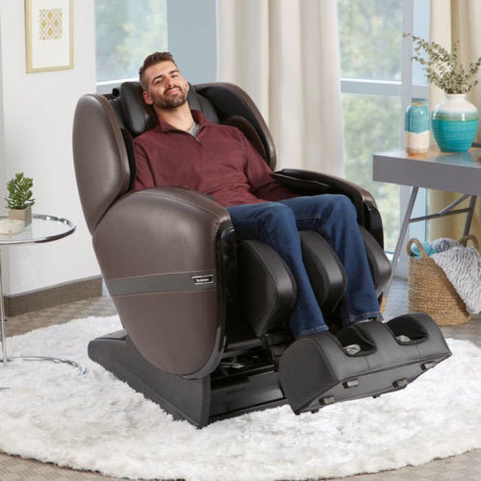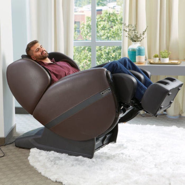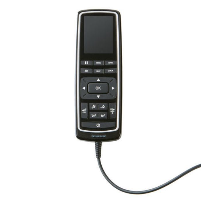 Certified Pre-Owned Renew 3D Zero-Gravity Massage Chair by Brookstone. Brookstone has a small number of Certified Pre-Owned RenewTM Zero-Gravity Massage Chairs available for resale. Each Brookstone Refurbished Massage Chair receives: A 50-point quality inspection Repairs as needed by Factory Certified Technicians for 2 years New factory-supplied parts and upholstery, as needed Hand-cleaning and sanitizing before shipment Full operation testing by a Brookstone massage chair expert Each chair has been refurbished and inspected by our factory-authorized Brookstone Massage Chair Team. Because these chairs may have some minor cosmetic blemishes (no rips or tears), they give customers the opportunity to enjoy the same luxurious massages as a brand new RenewTM Zero-Gravity Massage Chair, but at a significant savings. The story behind the RenewTM 3D Zero Gravity Massage Chair Customers have long loved our Renew line of Brookstone massage chairs because the chairs delivered so much massage value for the money. Our massage chair designers set themselves the challenge of taking the Renew series and adding true 3D massage that goes up and down, side to side, and in and out to follow the natural curvature of your spine. 3D massage enables the chair to give a much more intense and invigorating back massage--and we know you're going to love it. More details Five back massage techniques: Kneading, Tapping, Kneading & Tapping, Rolling and Shiatsu Zero-gravity recline with just a touch of the remote Easy-to-read, easy-to-use TFT remote Remote instructions can be programmed to English or Chinese Variable speed massage rollers Open foot box accommodates larger-size feet Extendable footrest with two Dynamic Squeeze zones, rolling Shiatsu foot massage, and pressure point nodes in foot and calf Two side pockets for holding tablet or reading materials Dimensions: 55" l x 31" w x 50" H (140 cm x 79cm x 127 cm) 253 lbs. (115 kg) Maximum user weight: 275 lbs.