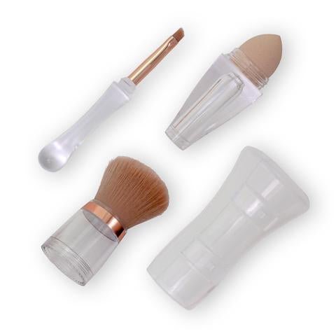 Denco's 4964N Total Face 3-in-1 Makeup Brush is the only brush you'll need to create a beautiful, full face of makeup! the brush easily twists apart to reveal three distinct applicators in one convenient handle. The non-latex foam applicator is ideal for flawlessly blending foundation, BB/CC cream and tinted moisturizers; the dense powder brush expertly applies pressed and loose powder, as well as blush, bronzer and highlighter; the eyeshadow blending brush applies and blends powder, cream or gel eyeliners and shadows (it can also be used as a lip brush). Ideal for home use and travel, the 3-in-1 brush screws together securely and features a locking cover for protection during storage.