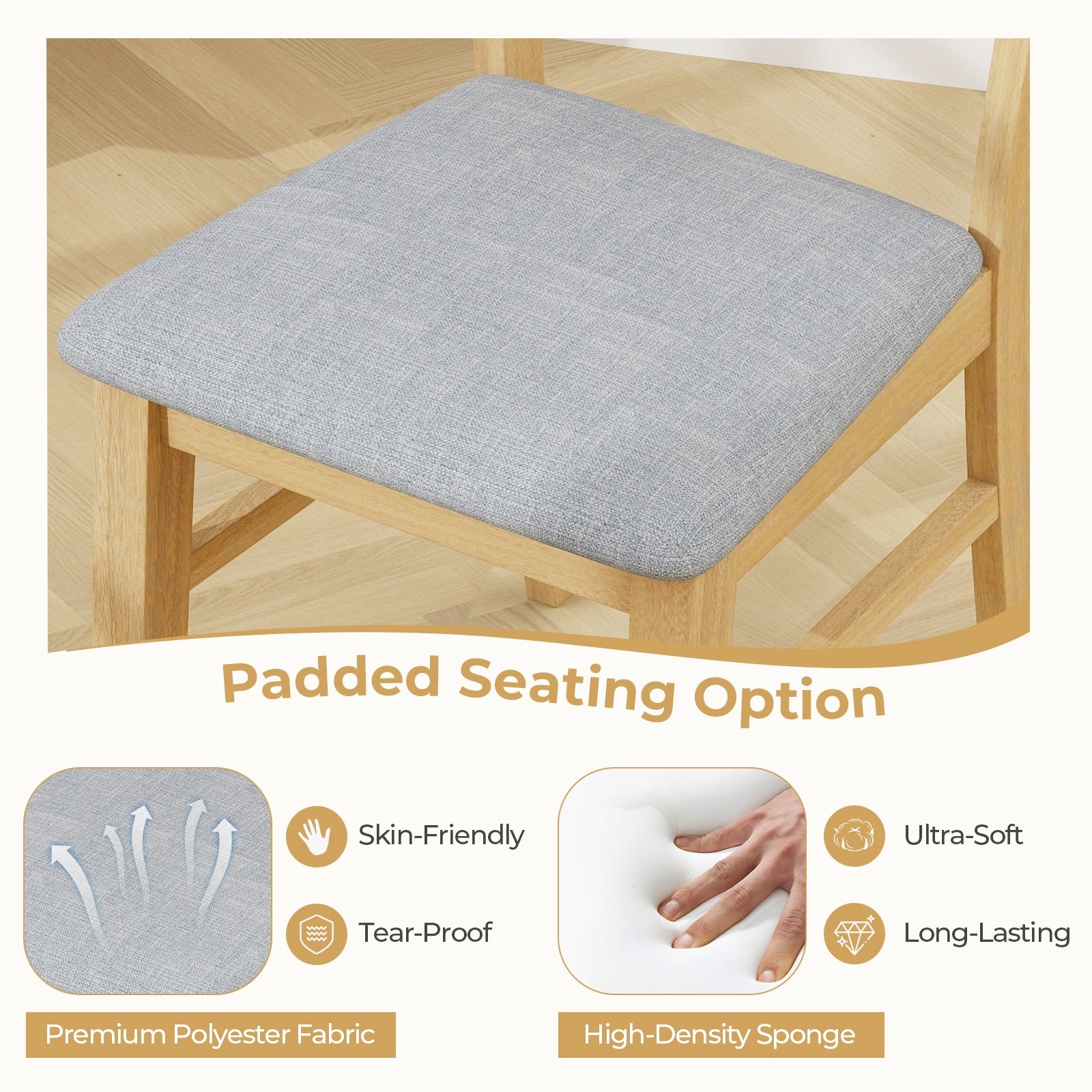 ● 100% Natural Rubber Wood Frame: The dining chair frame is crafted of solid rubber wood ensuring excellent sturdiness and deformation resistance. And with exquisite craftsmanship it also provides a smooth and burr-free surface enhancing both safety and aesthetic appeal.