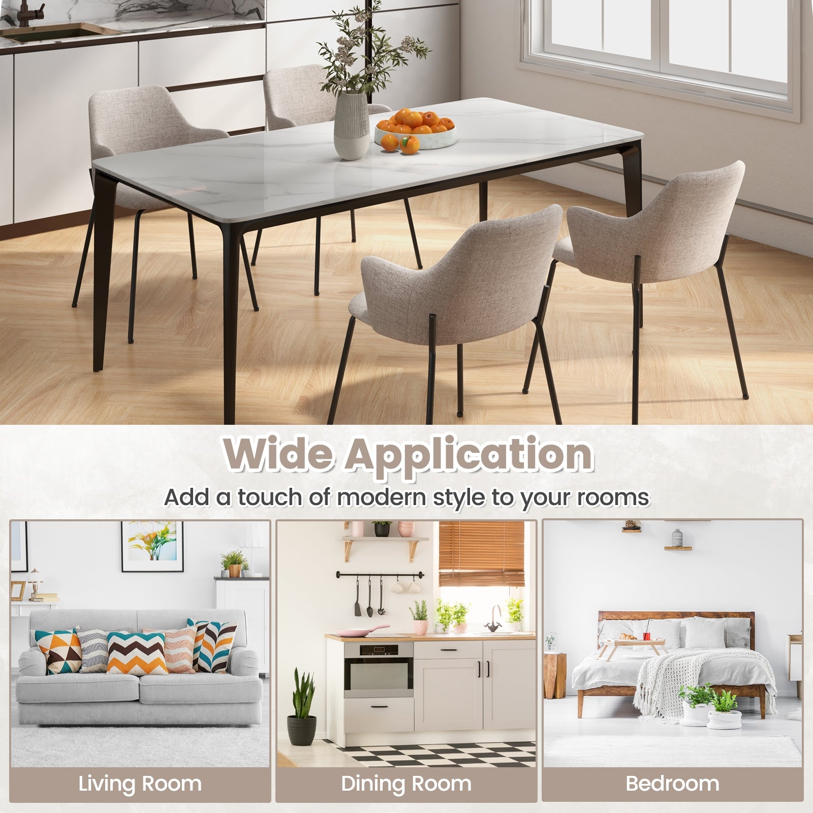 ● Durable Material and Stable Frame: Crafted with a stable metal frame and wear-resistant fabric this dining chair offers sturdy and strong support. It is designed to withstand daily use and can load a capacity of 330 lbs.