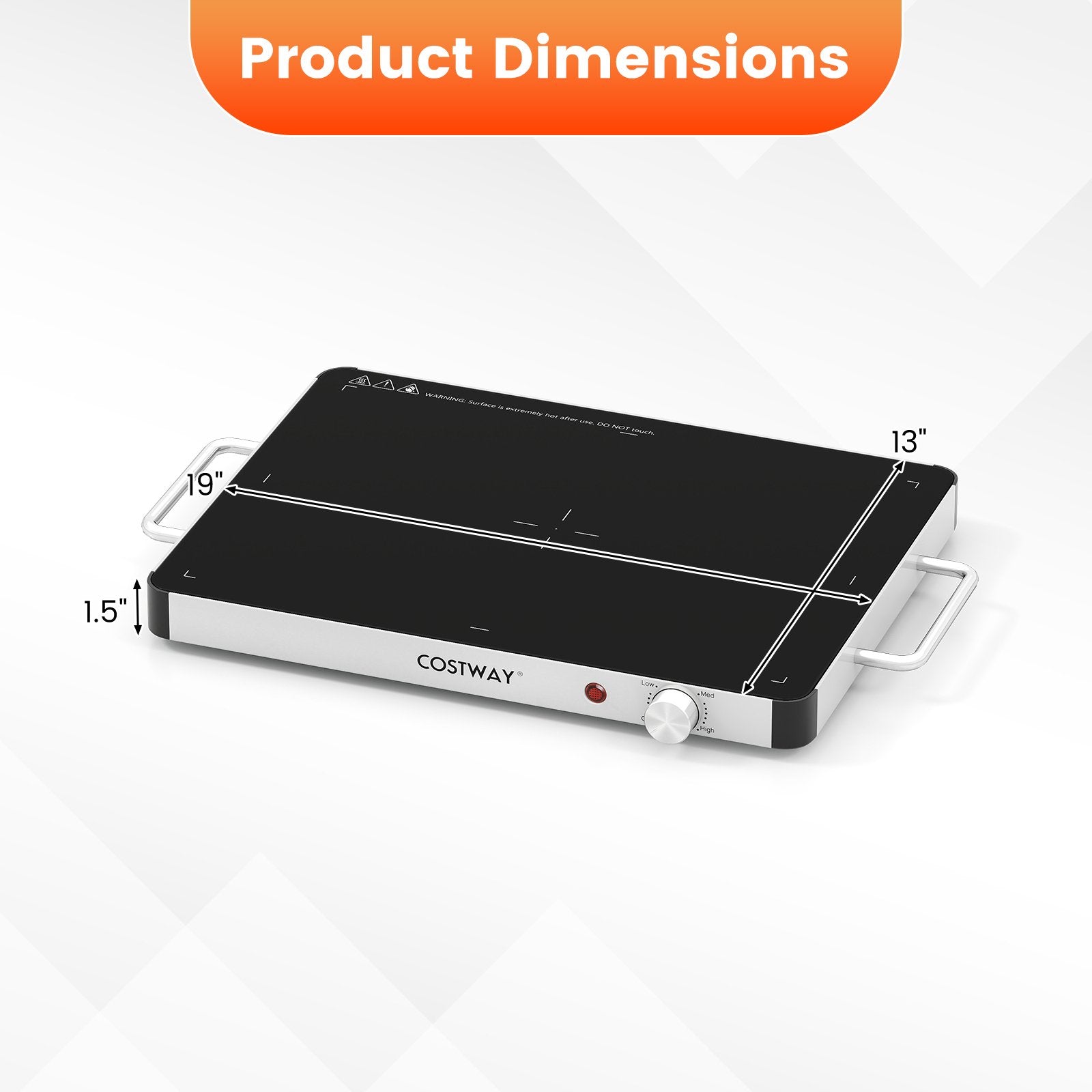● Adjustable Temperature Control: This electric warming tray features 3 adjustable temperature settings: 86℉-113℉ for low 140℉-176℉ for medium and 212℉-248℉ for high. It is also equipped with a built-in thermostat for even heating keeping your food at the desired temperature.