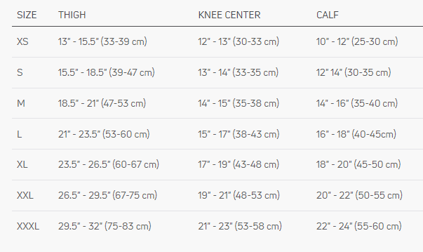 *Take the measurement of your thigh and calf 6" above and below your kneecap using a flexible type tape measure. Use the circumference you measure here to choose your size carefully and select the right one at checkout.