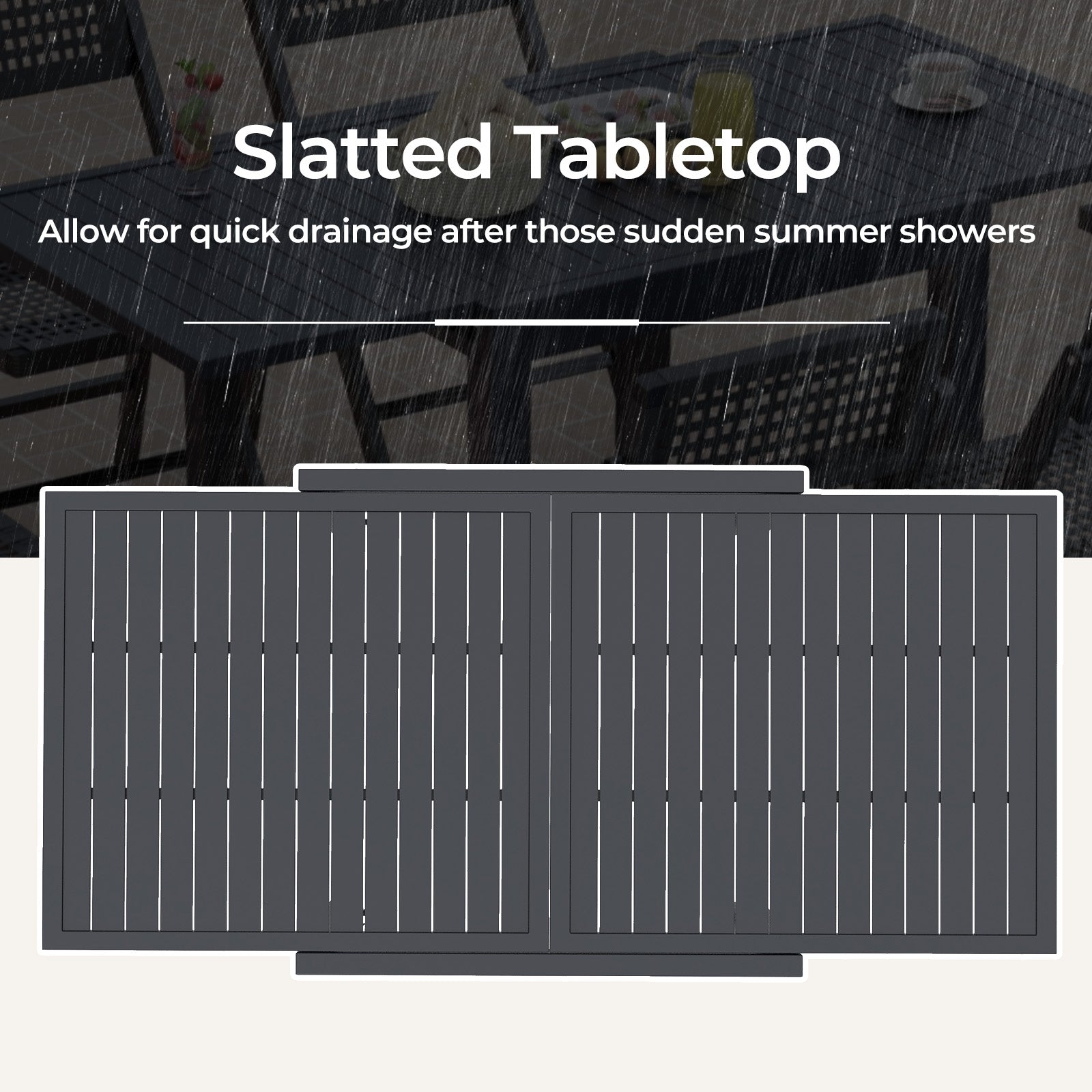 -Slatted tabletop prevents water from accumulation