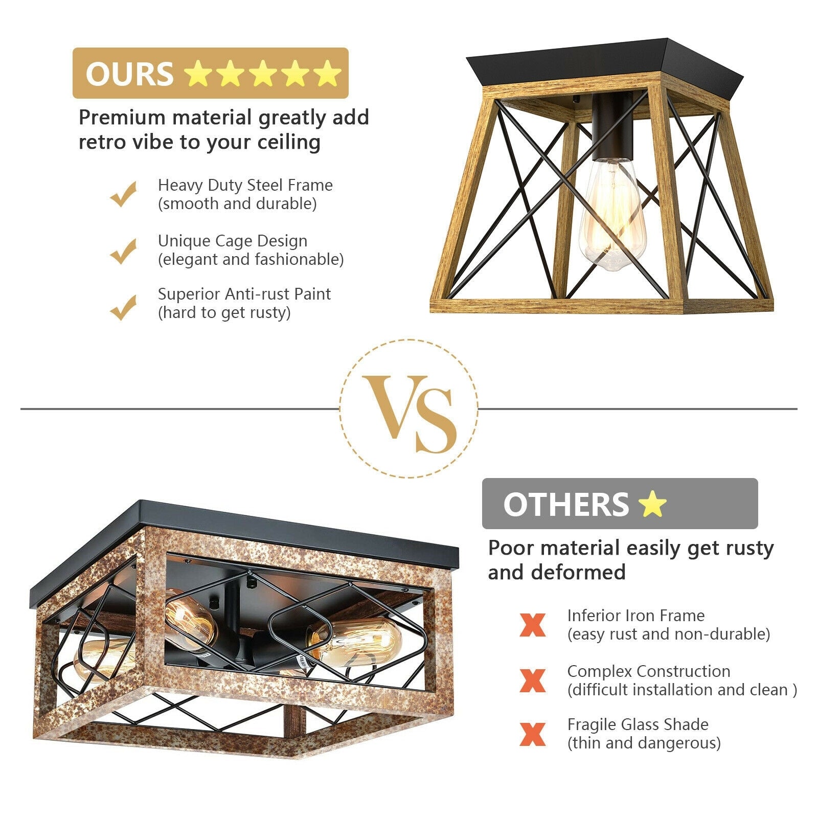 ● Quick Installation: The installation steps of the square ceiling light are simple all you need to do is install the mounting bracket wiring securing the canopy and screw on the bulb. Beyond that the open-caged design makes it easier to replace the bulb.