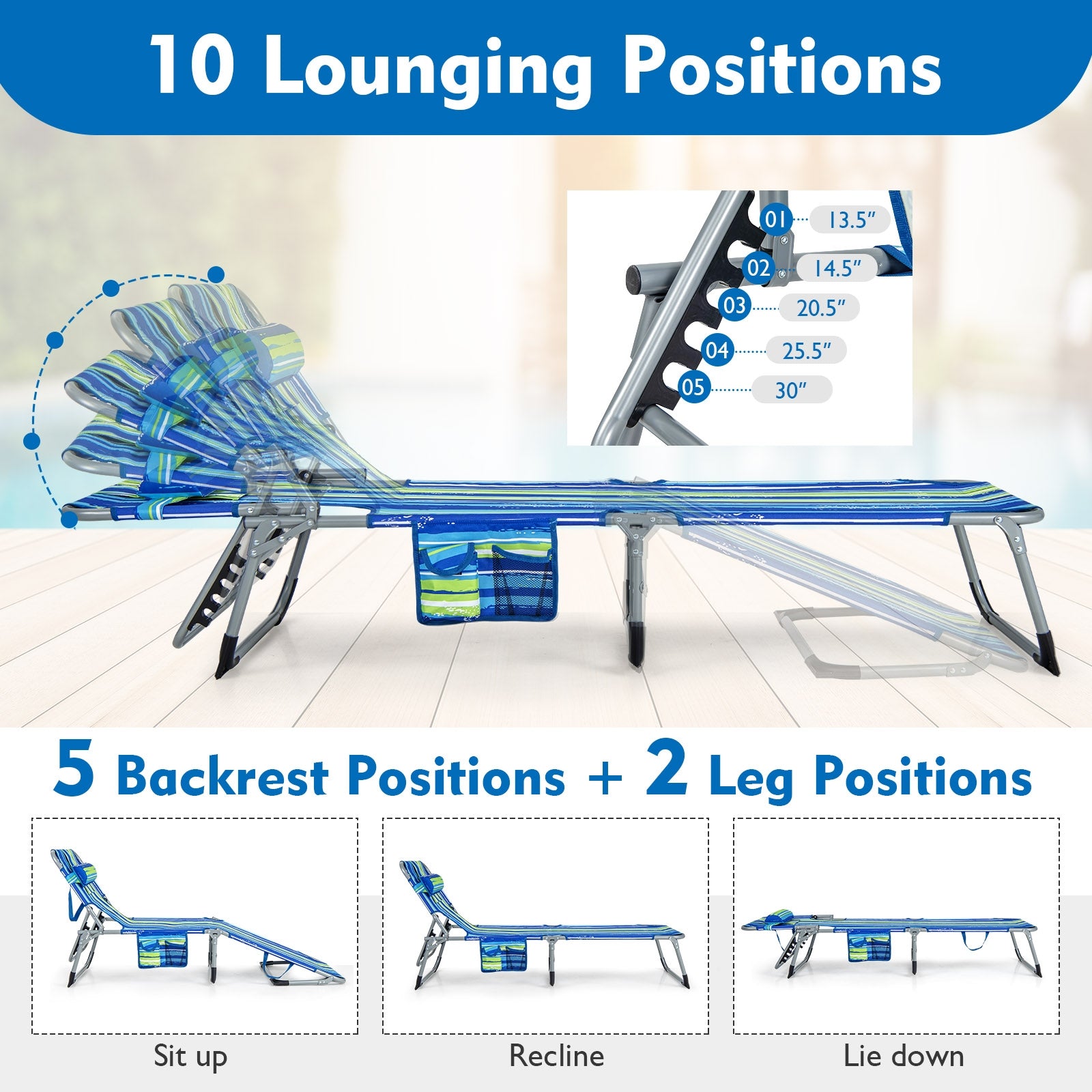 ● Easy to Fold and Open: The folding lounge chair can be easily set up and folded within seconds which saves your time and energy. Besides the beach chair has no assembly required and the simple structure makes it easy for you to figure out how to put them together thus you can enjoy your leisure time as soon as you receive the package.