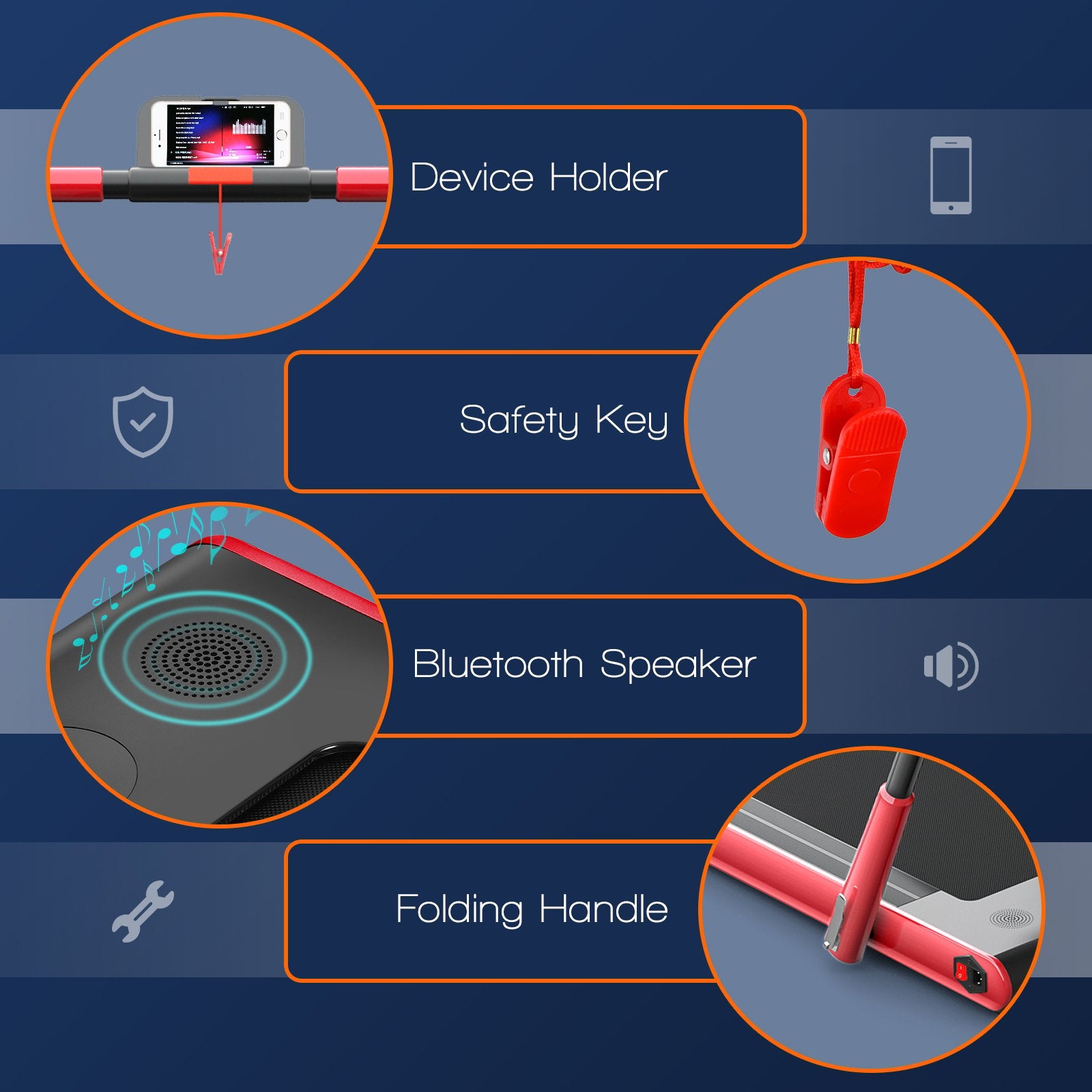 Its ultra-quiet motor and design structure allows it to be used at the home office and gym with no disturbances. Back joints knees muscles and ankles are provided great cushioning with its 7-layered anti-skid and shock-absorbing running belt. Moreover all your workout’s real-time details are displayed on the versatile LED display. Next the phone holder only is there to ease the placement and usage of your phone while exercising. Thanks to the remote control and emergency stop button the user is guaranteed safety in case of a mishap.