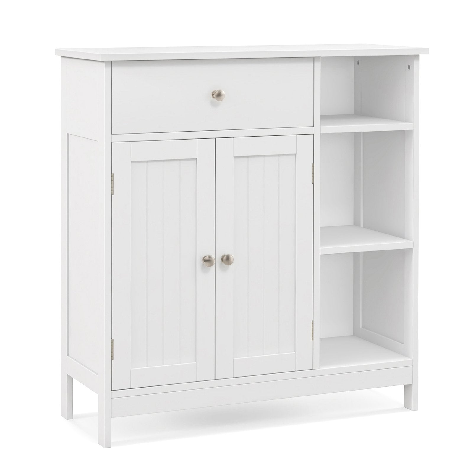 ● Ample Storage Space: This bathroom storage cabinet with spacious tabletop is equipped with a large drawers 3 open storage compartments and a 2-tier storage cabinet which combines open and concealed storage together.