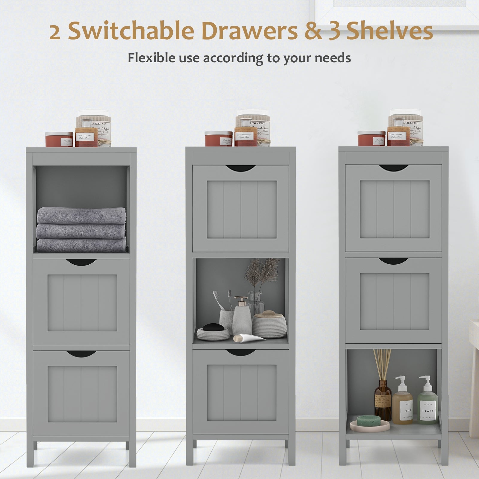 Freestanding Storage Cabinet with 2 Removable Drawers for Bathroom-Gray