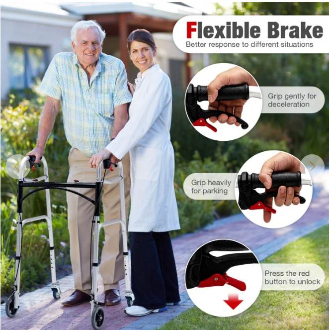 ● Easy to Walk on Various Terrains: This folding walker always puts safety first. Therefore, the folding walker is designed with 2 directional wheels and 2 universal wheels, which promotes flexible movement and is convenient for controlling the direction to ensure smooth walking on kinds of grounds.