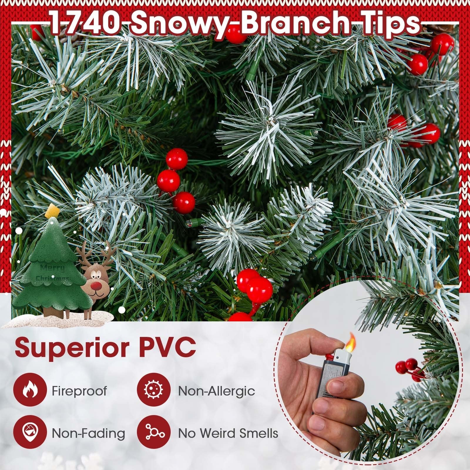 ● Safe and Durable PVC Material: Thanks to selected PVC the Xmas tree remains vibrant and smell-free throughout the holiday season. Besides it also resists fire and won't cause allergies which is safe for pets and children during long-term use.