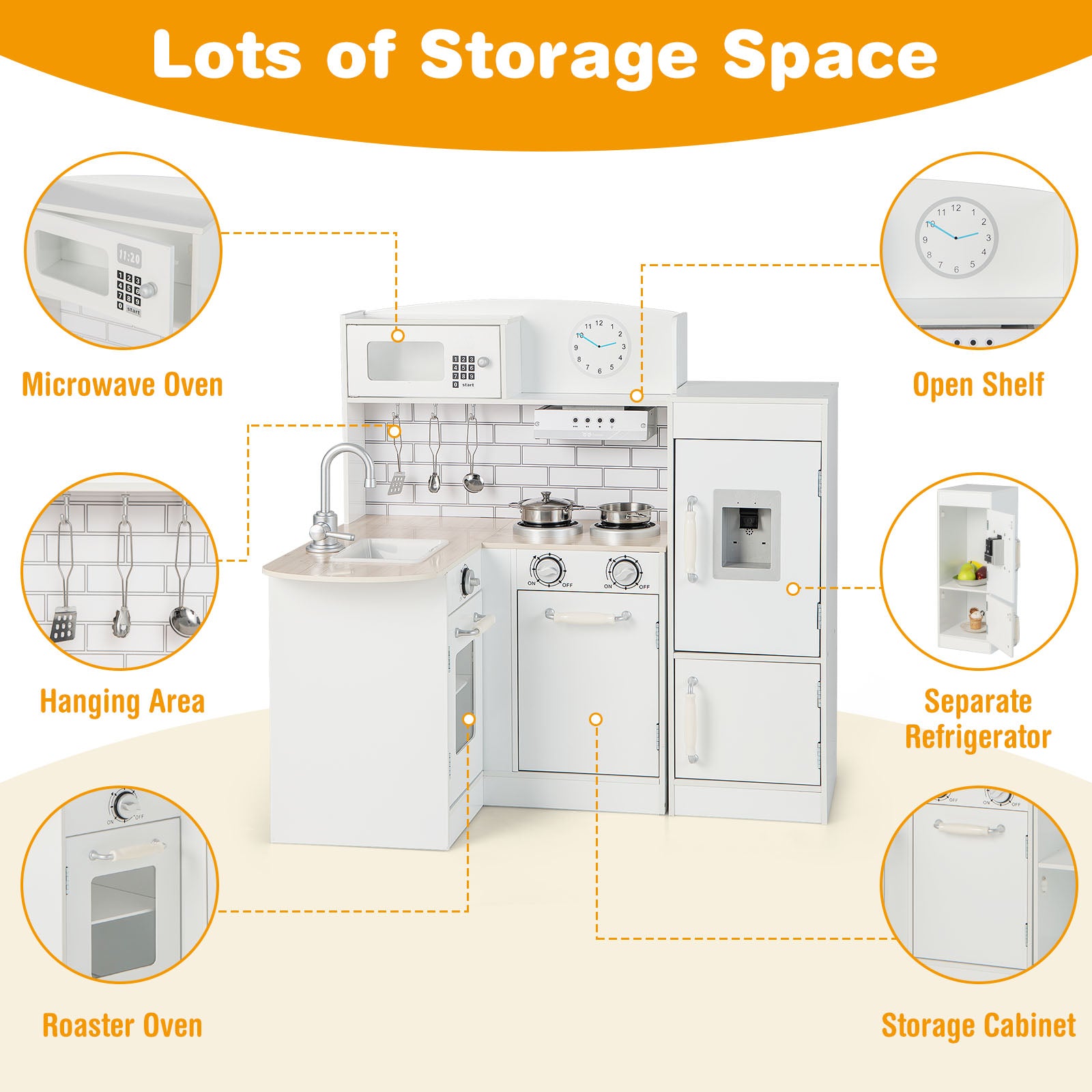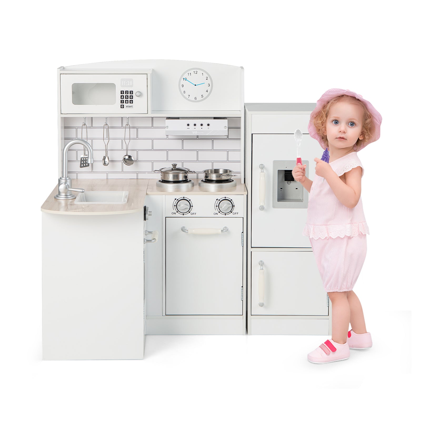 ● L-shaped Design and Separate Refrigerator: With unique L-shaped design this kid's kitchen playset fits perfectly with any corner of your house and won't occupy too much space. Plus the separate refrigerator can be easily removed when not in use to save more space.