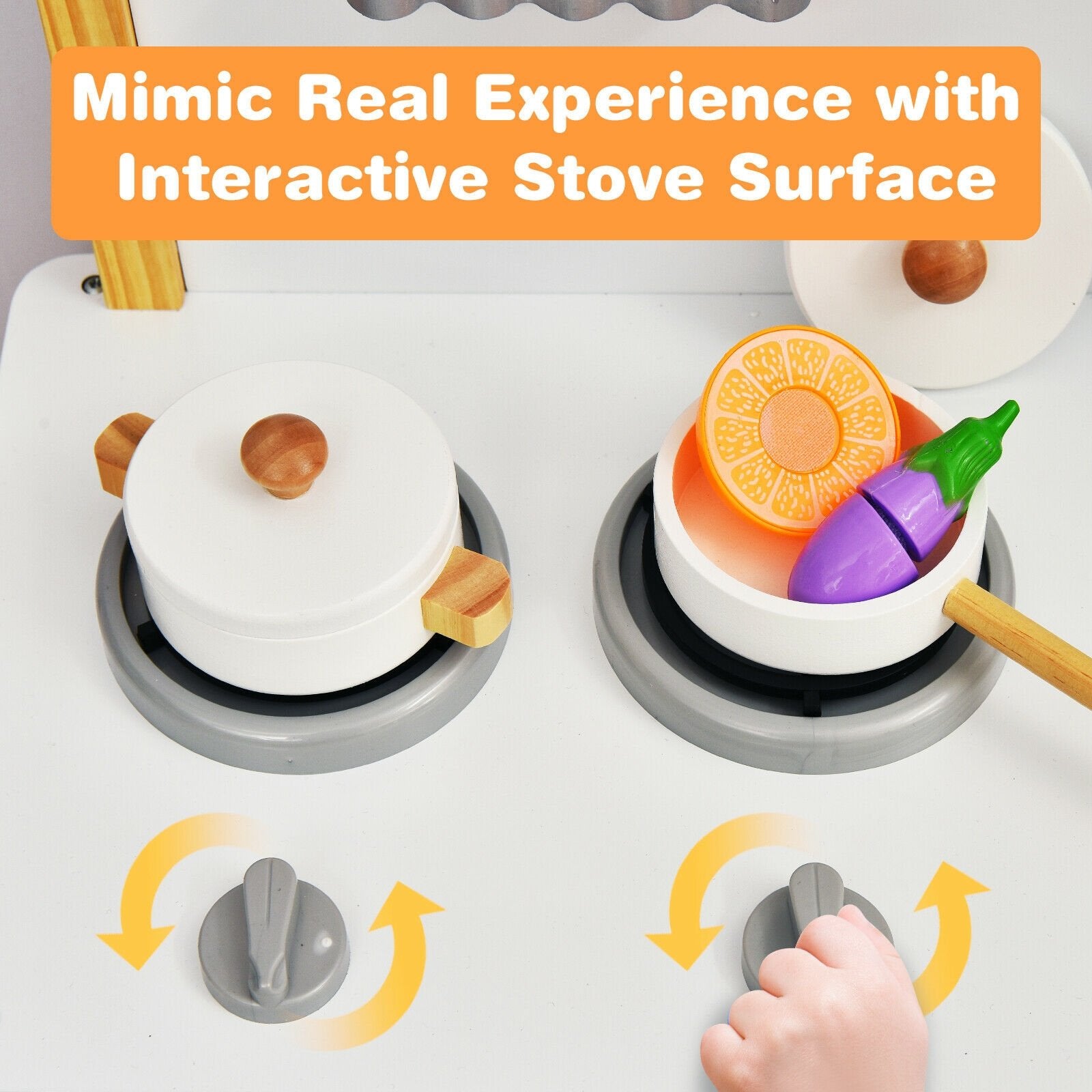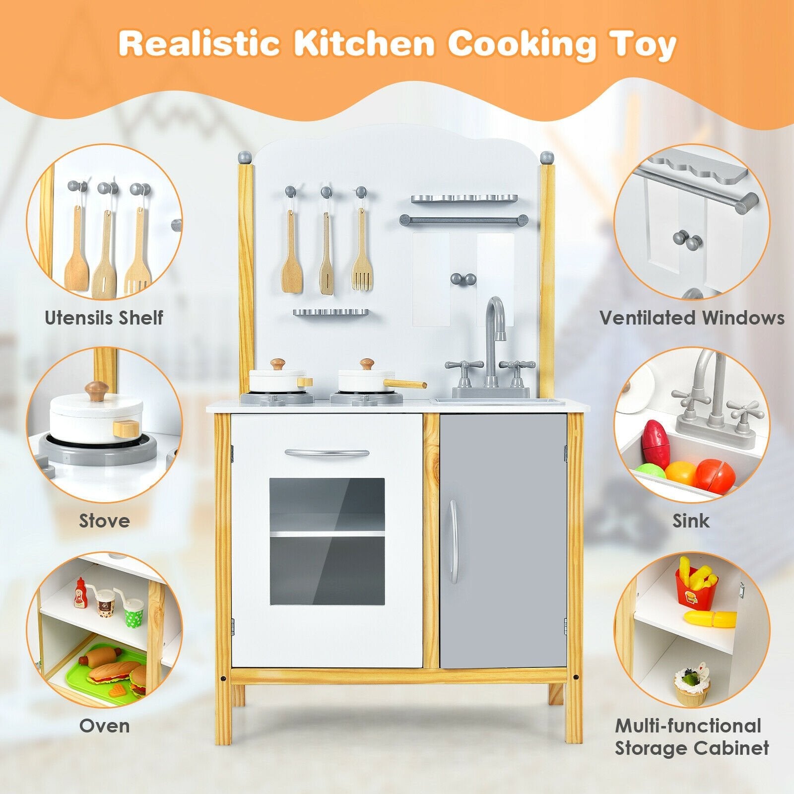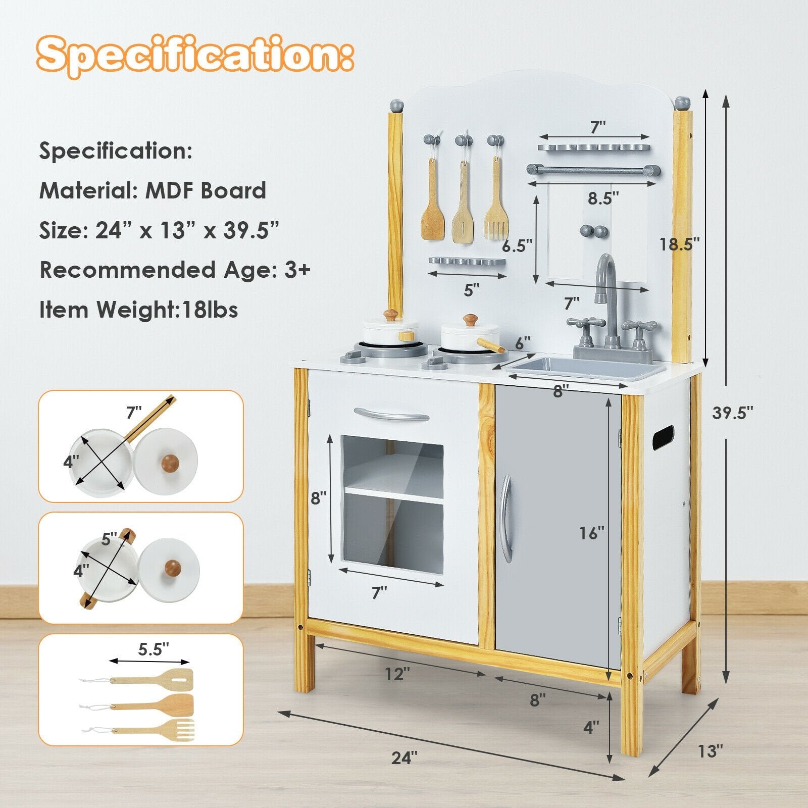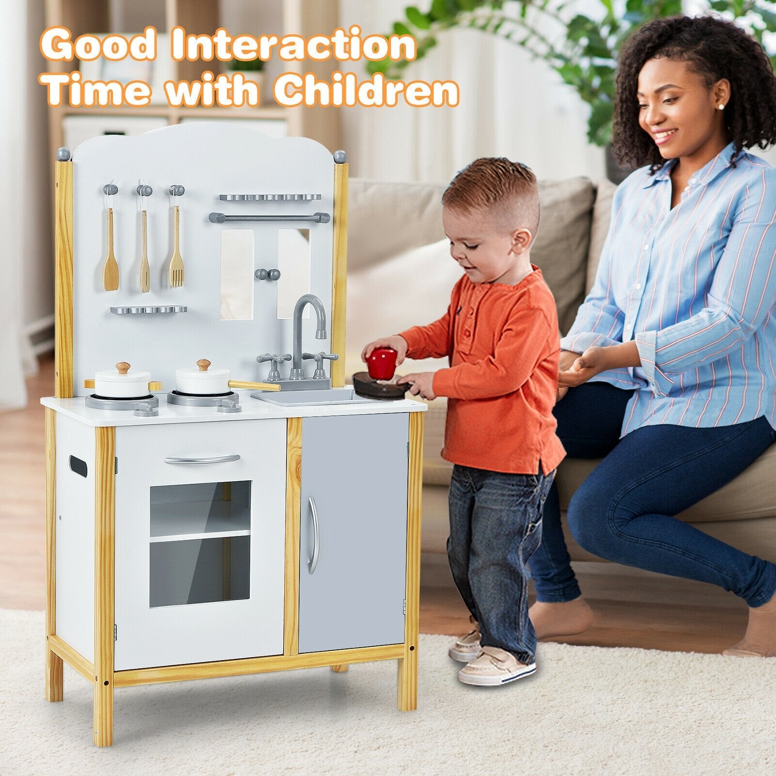 ● Safe Material and Sturdy Construction: Built with premium-quality and scratch-resistant MDF board the toy kitchen set is not only durable and sturdy for long-term use but also easy to clean with a smooth surface. In addition with eco-friendly paint coating your kids can enjoy kitchen time safely.