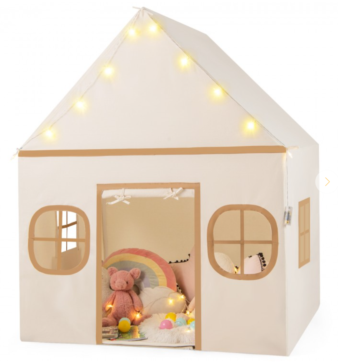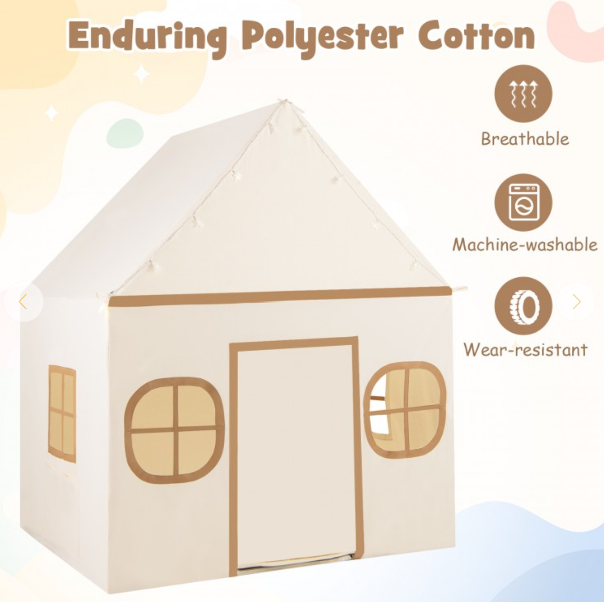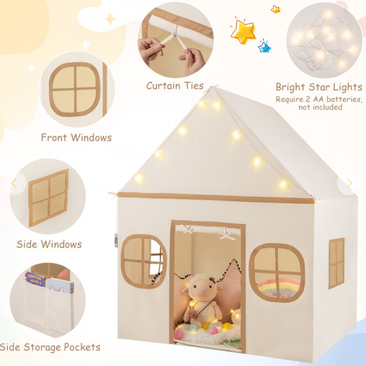 Kids Play Tent Large Playhouse with Door Curtain and Windows Star Lights - Beige