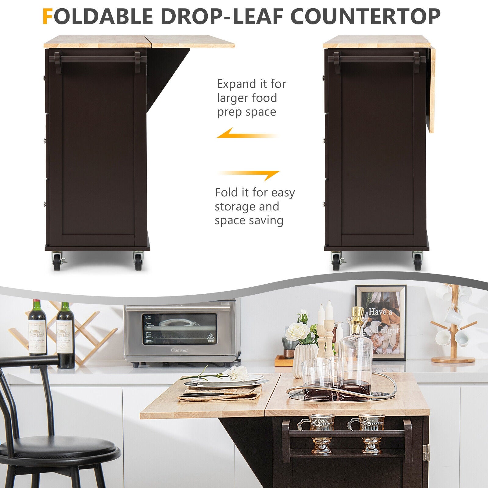 ● Adjustable Shelves and Drop Leaf Countertop: A cabinet with 2 shelves can be adjusted to 3 positions to divide space allocation to satisfy your needs. The top is accompanied by a 13" depth drop leaf bar you can expand it when you need more counter space or just easily drop it down to make it compact to maximize the space.