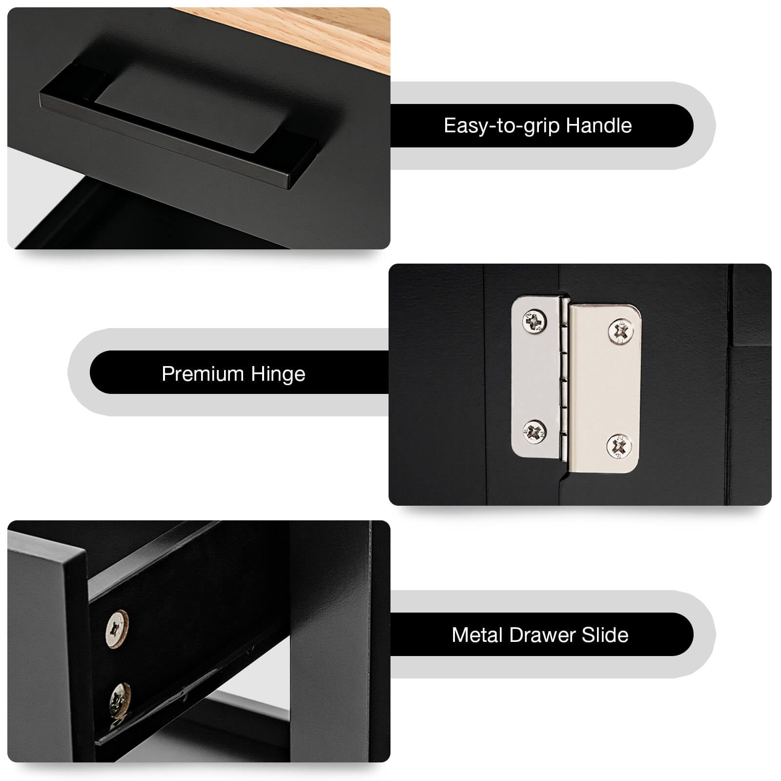 ● More Considerate Design: Exquisite handles of drawer and door bring you much convenience when you want to take out items. Magnetic catch premium hinge and metal drawer slide ensure effortless opening or closing. Apart from that faux wood grain top makes the whole kitchen island even more attractive.