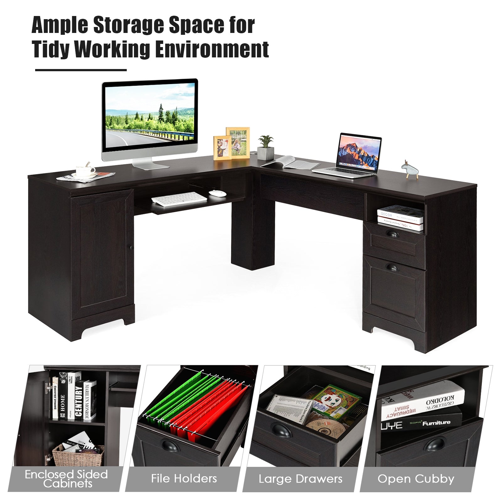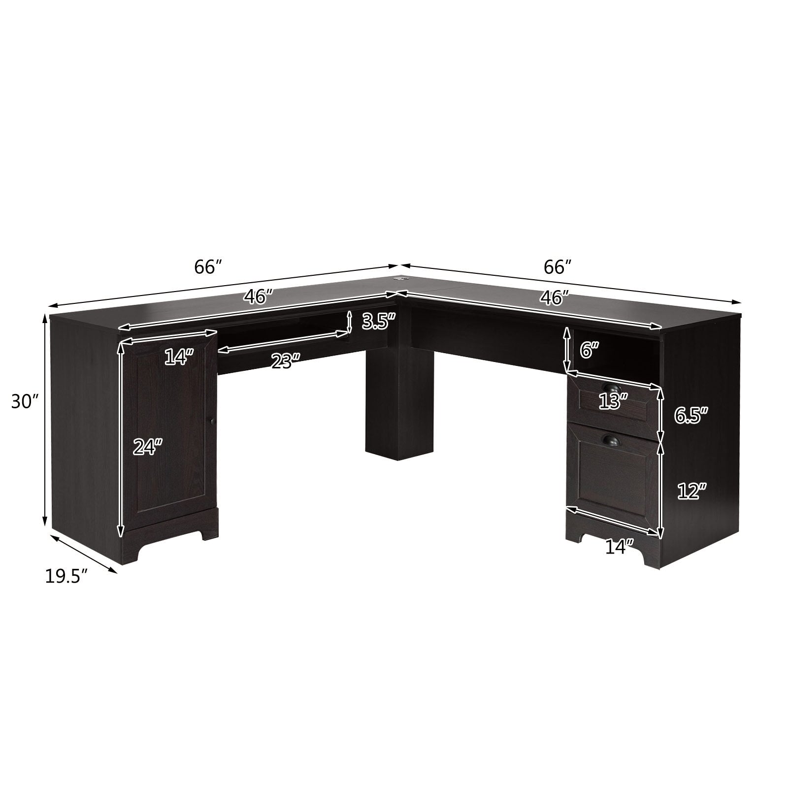● Large Work and Storage Space: 66" x 66" L-shape desktop provides ample space for your computer monitor and printer 2 drawers cabinet and an open shelf underneath offers extra room for convenient storing of your office supplies books and so on.