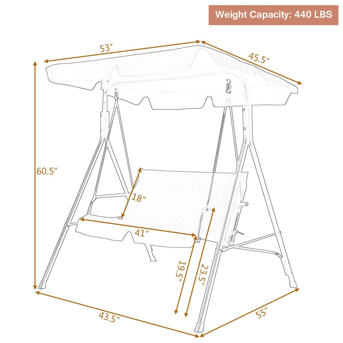 - Stable and Durable: Patio swing is made of steel frame which ensures large weight capacity(approx: 300lbs) and sturdy construction. Powder-coated finish and polyester fabric provides long-lasting enjoyment for years to come.