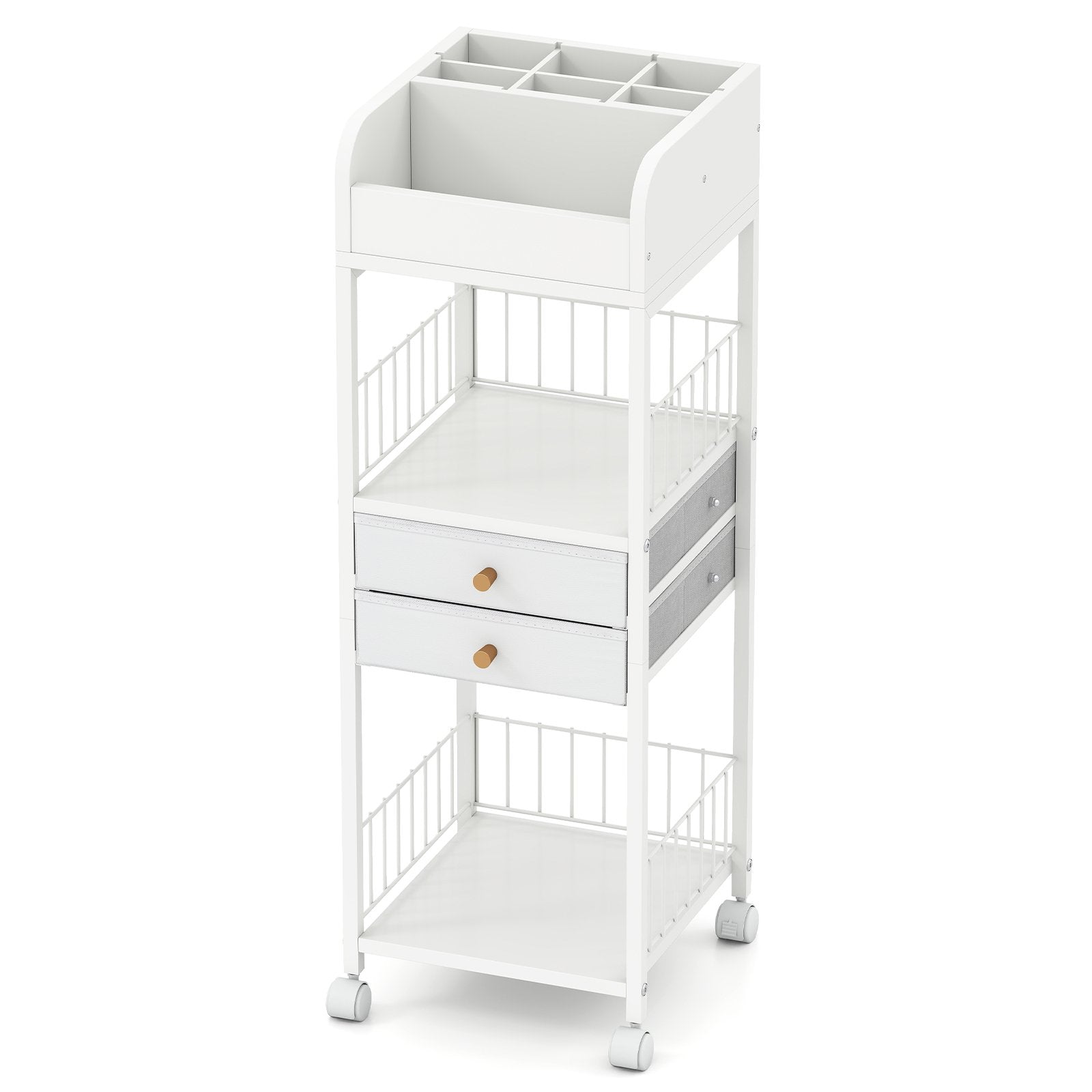 ● Easy Mobility and Lockable Design: Equipped with 4 universal wheels this vanity organizer holder can be moved effortlessly around your space. 2 wheels have brakes for locking the cart in place when required.