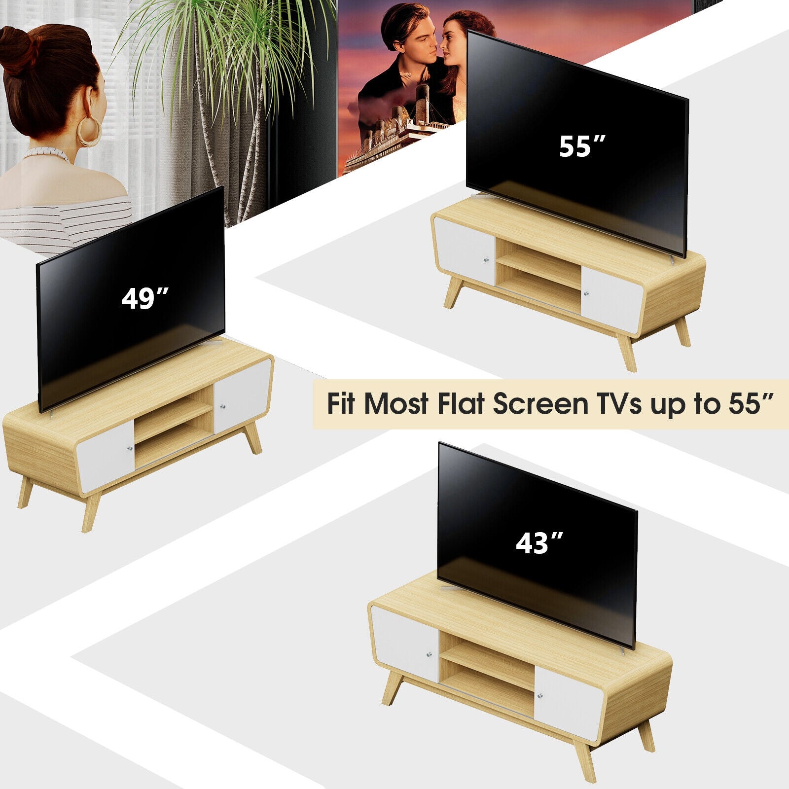 Spacious desktop is compatible with the size of most television panels up to 55". 2 sliding doors and an adjustable open shelf provide you with multiple storage options for assorting a wide arrange of media items which creates a clean and tidy impression for your home. In addition you can also use it as a console table to facilitate storage. Modern style and elegant appearance add refined sensation to your home which works great as a TV table and display stand.