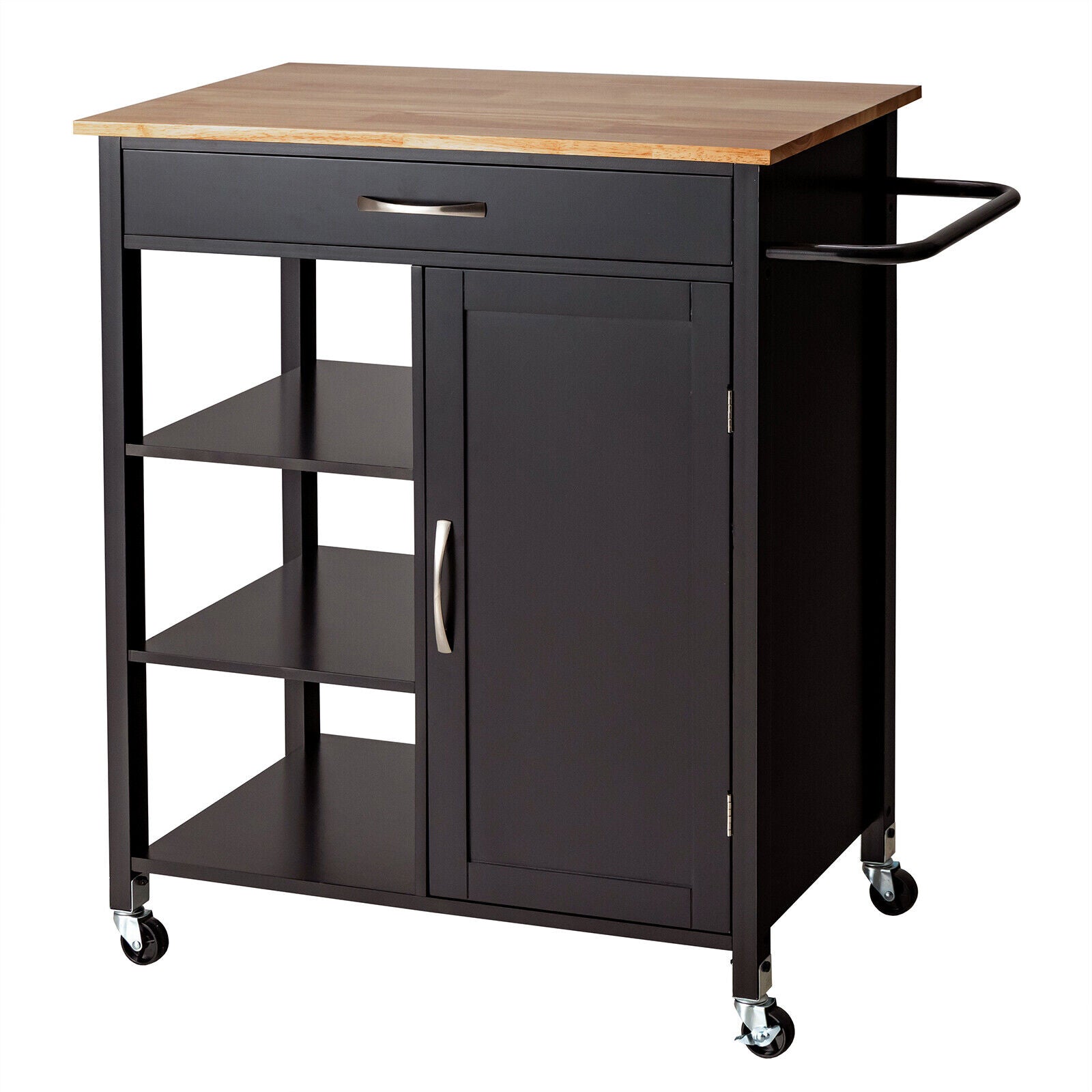 ● Sufficient Storage Space: This kitchen serving cart has rubber wood countertop deep drawer 3-tier open shelf and single door cabinet to meet storage needs of the whole family. You can use it to hold your cups glasses tableware vegetables fruits spice jars kitchen appliances and ornaments.