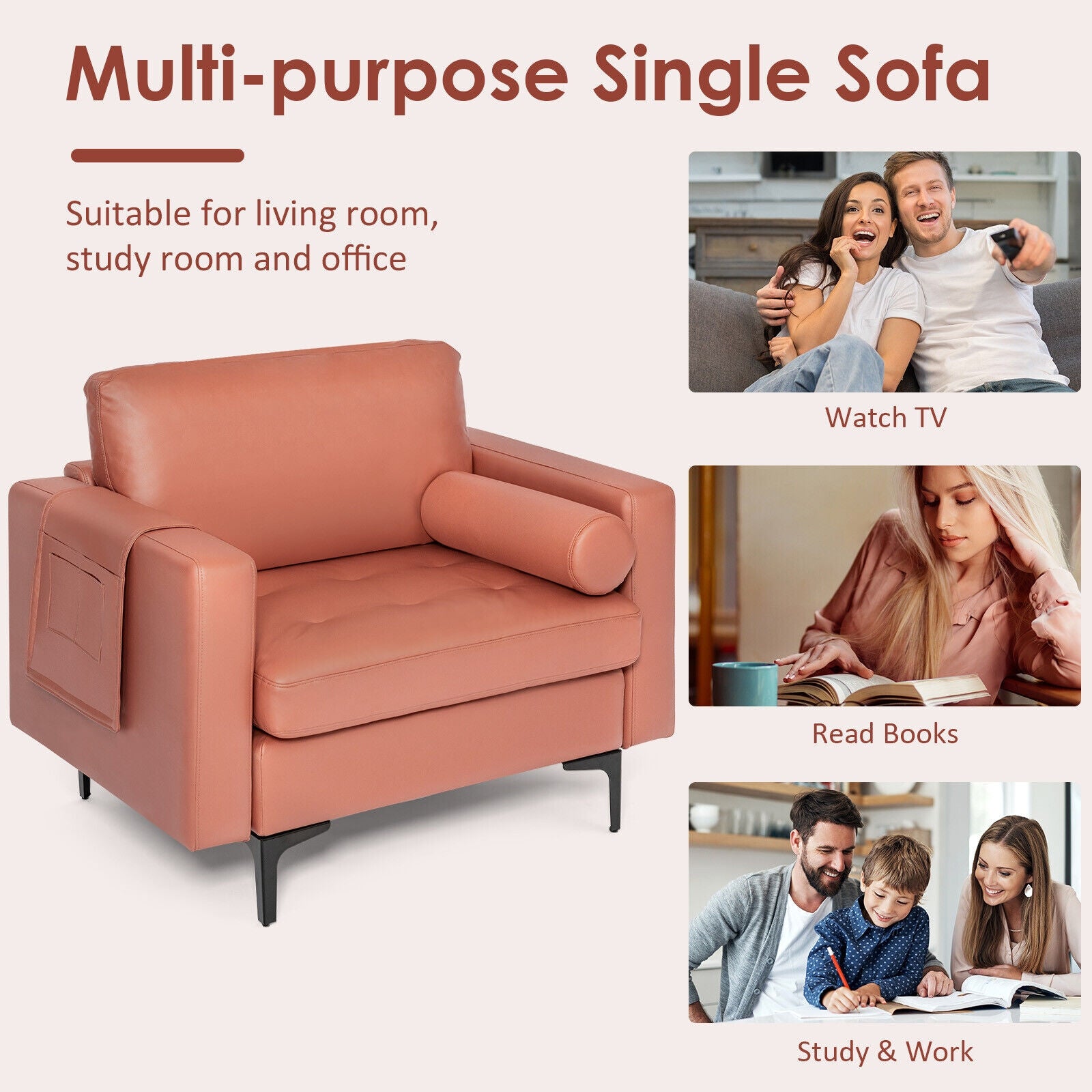 ● Detachable Pillow and Armrest Magazine Pocket: The detachable back pillow with zipper is filled with A-grade cotton goose-down and latex particle while the bolster is padded with soft sponge. Thus you will feel comfortable when touching the back cushion and bolster. The accent chair comes with an armrest caddy holder for magazine or books and also has 2 pockets for remote control.