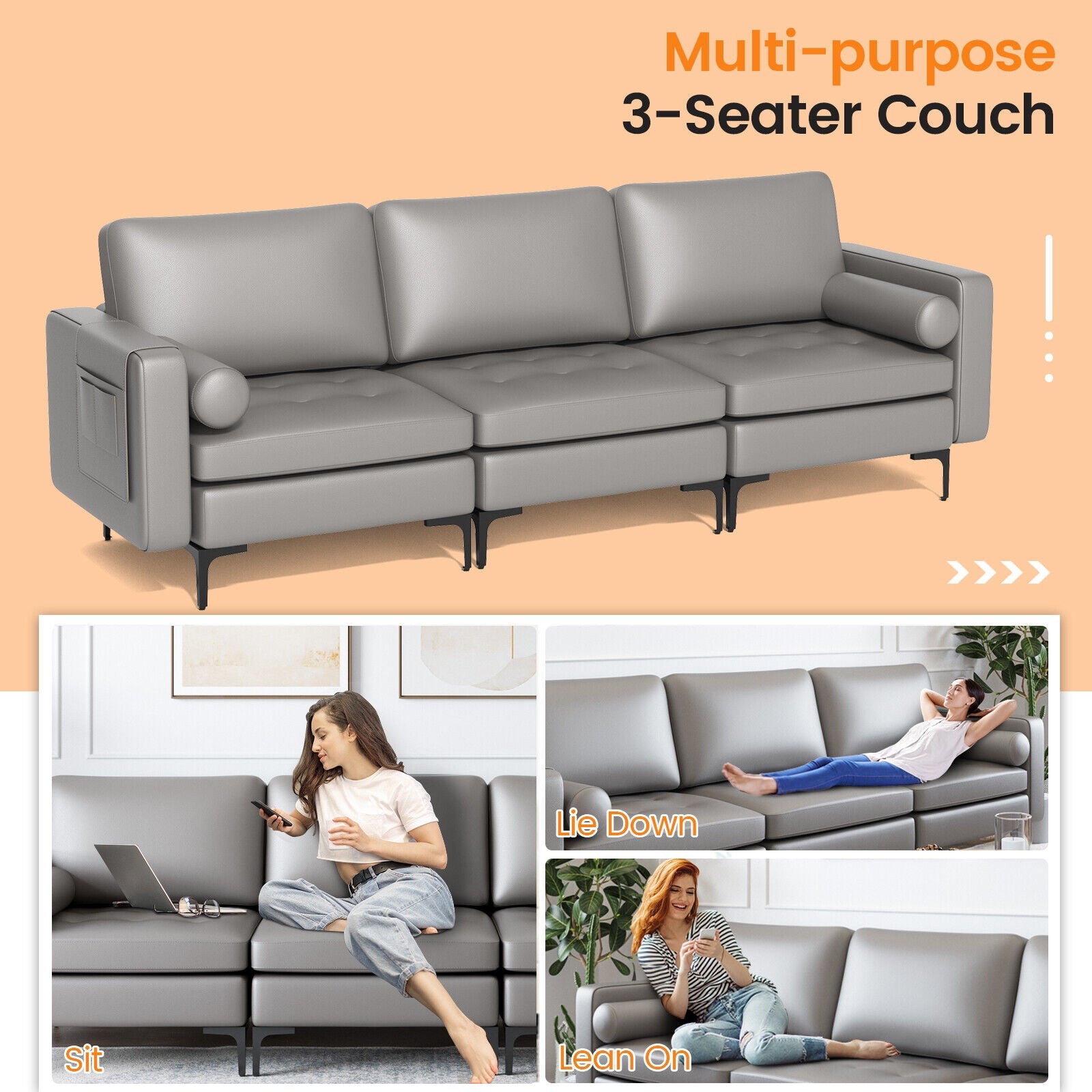 -Modular 3-Seat Sofa Couch with Socket USB Ports and Side Storage Pocket