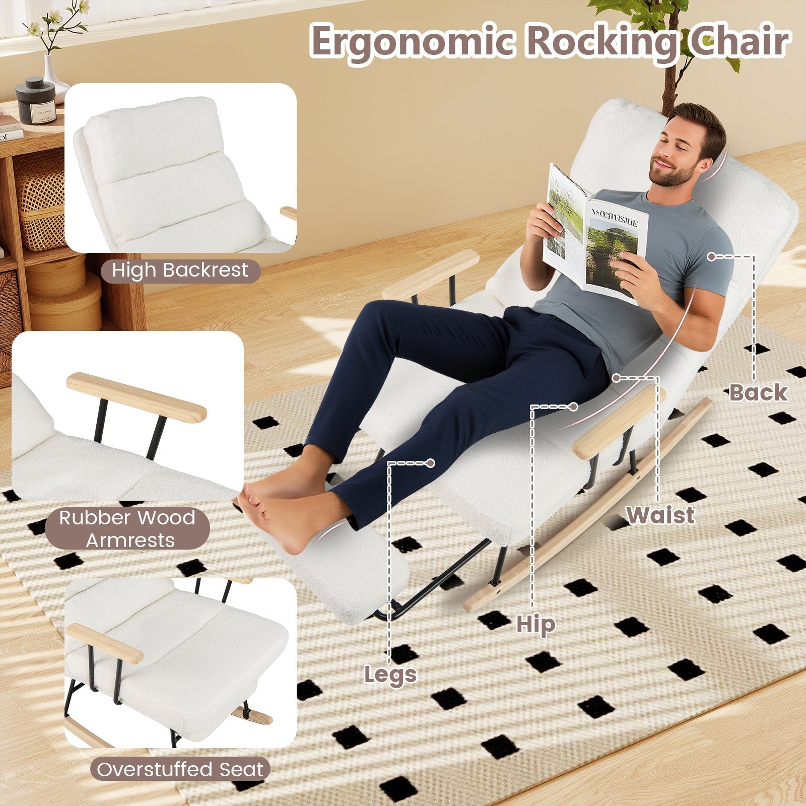 ● Ergonomic Rocking Chair: Featuring a high backrest rubber wood armrests and overstuffed seat the rocking chair well supports your back waist arms and hip. Moreover the retractable footrest allows you to stretch your legs for relaxation.
