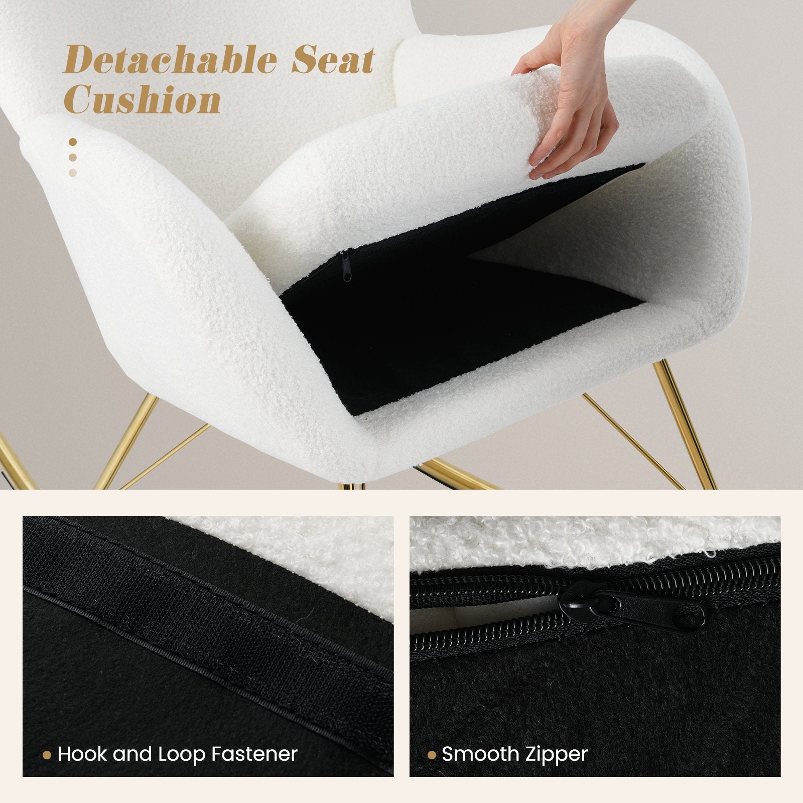 ● Versatile Rocking Chair: With white fabric and golden frame the chair brings a touch of elegance and texture to your living space. It can be used in the nursery bedroom living room and more.