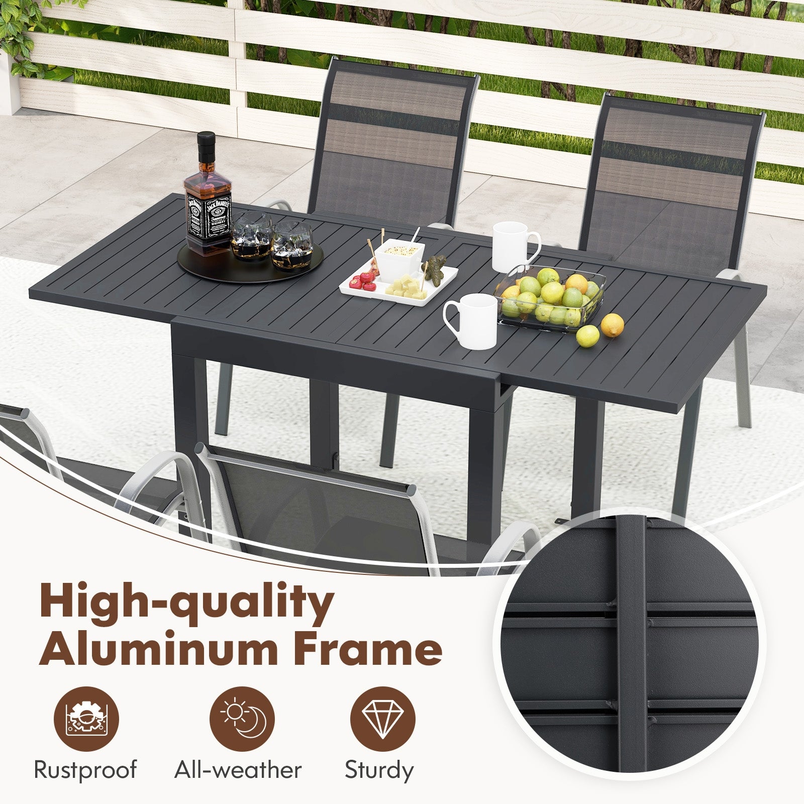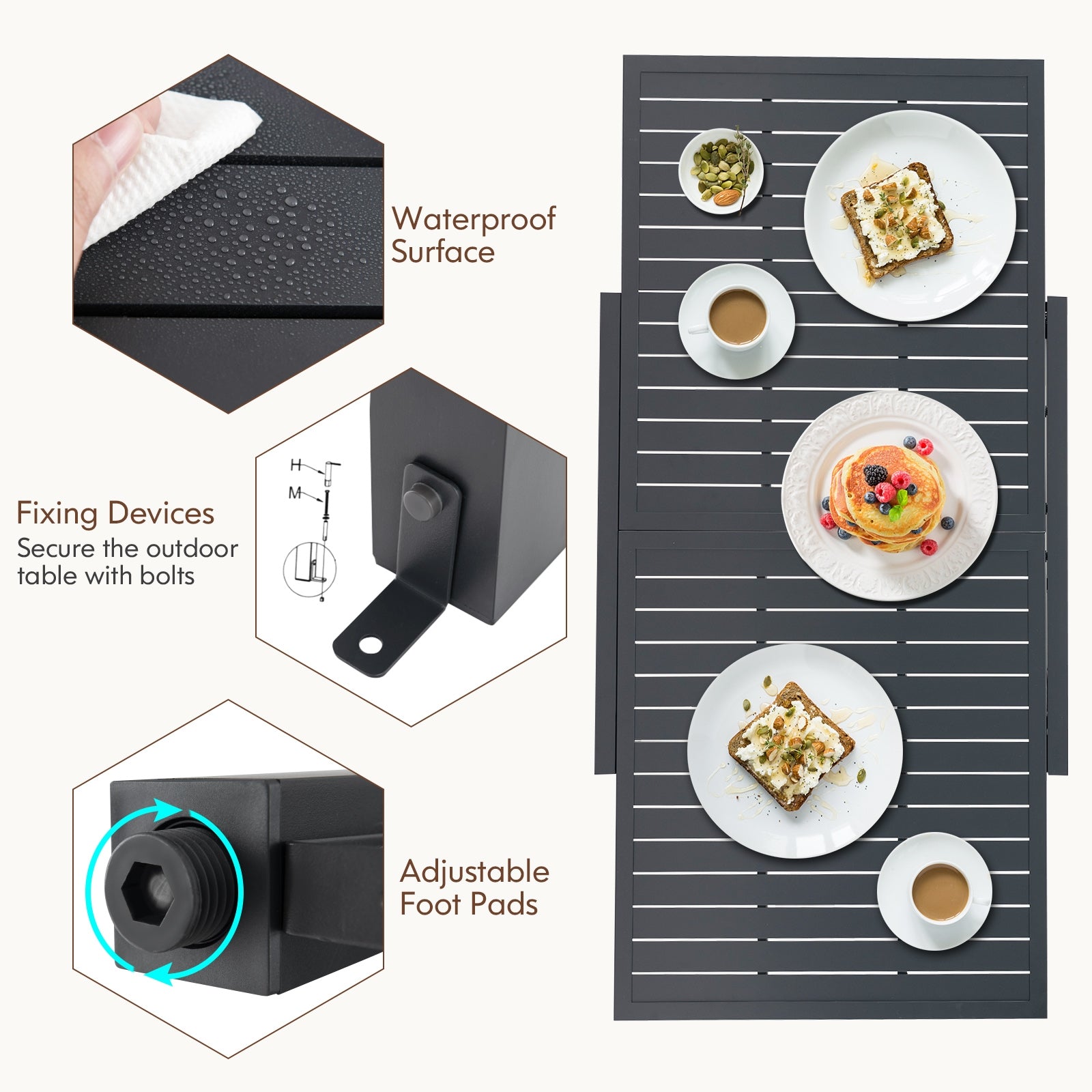 - Extendable Desktop: The patio aluminum table effortlessly expands from 31.5” to 63”/ 80 cm to 160 cm complemented by the smooth sliding rails. Thus the aluminum dining table provides a large space for dining activities and comfortably accommodates 4 people making it ideal for outdoor gatherings and family meals.