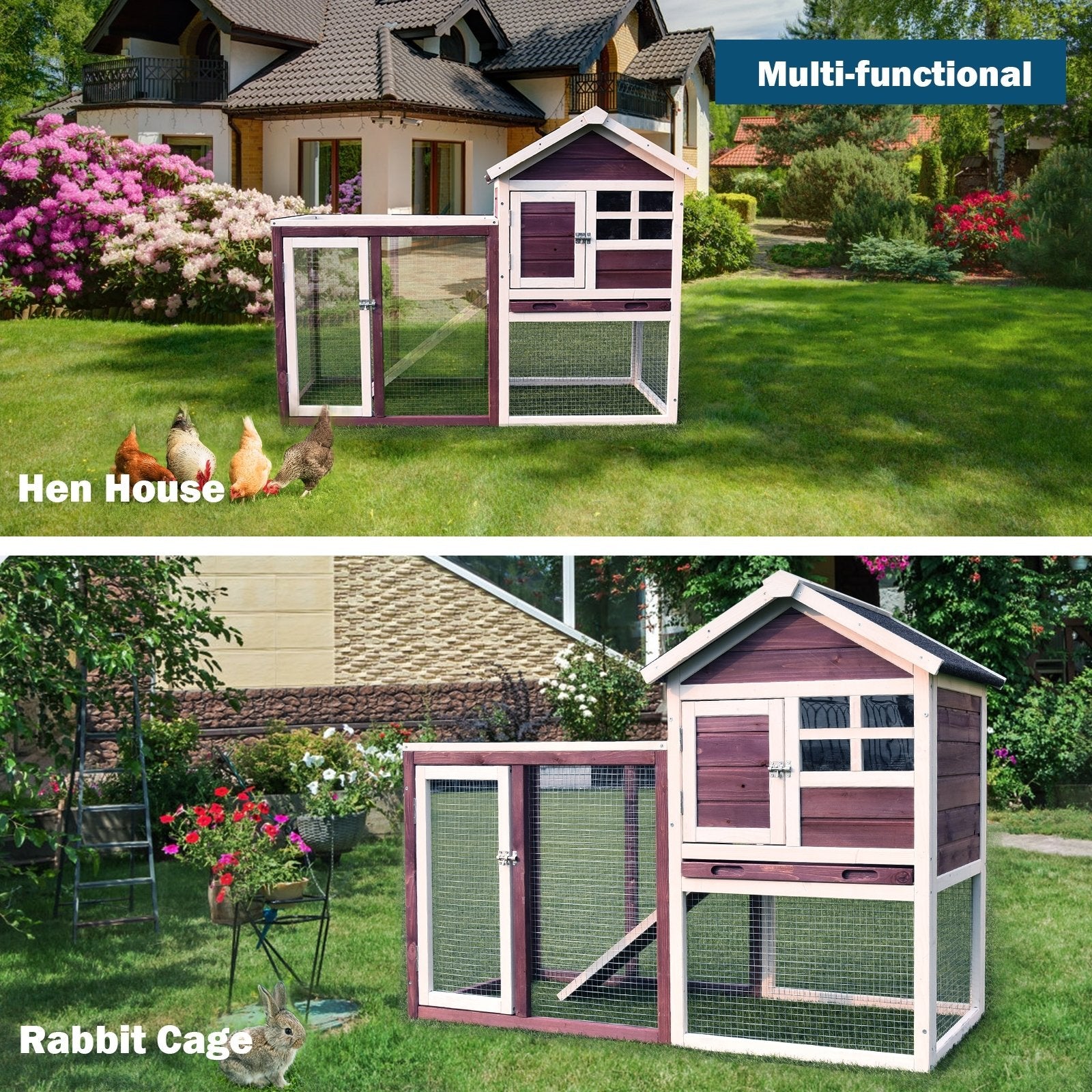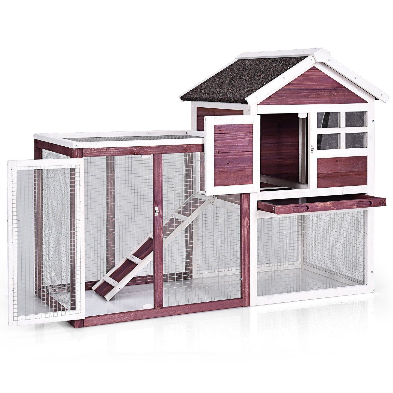 ● Spacious 2-Story House: This spacious rabbit hutch has two stories for your pets to act. The large outdoor run allows your pets to roam and play in the warm sunshine freely. And the penthouse provides pets with a peaceful and warm space to rest. Through the window you can check on your pets without disturbing.