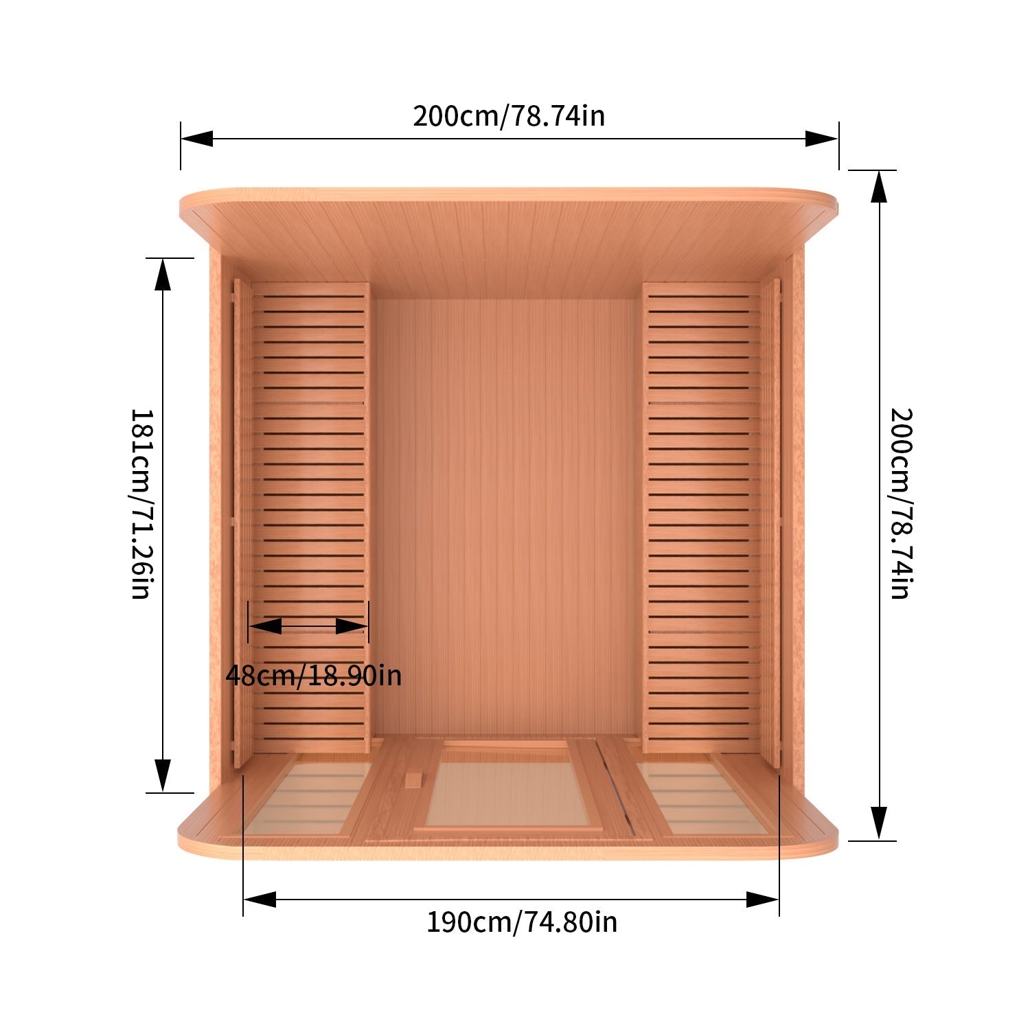 · Interior: 190 x 190 x 200 cm (75 in. × 75 in. × 79 in.)
