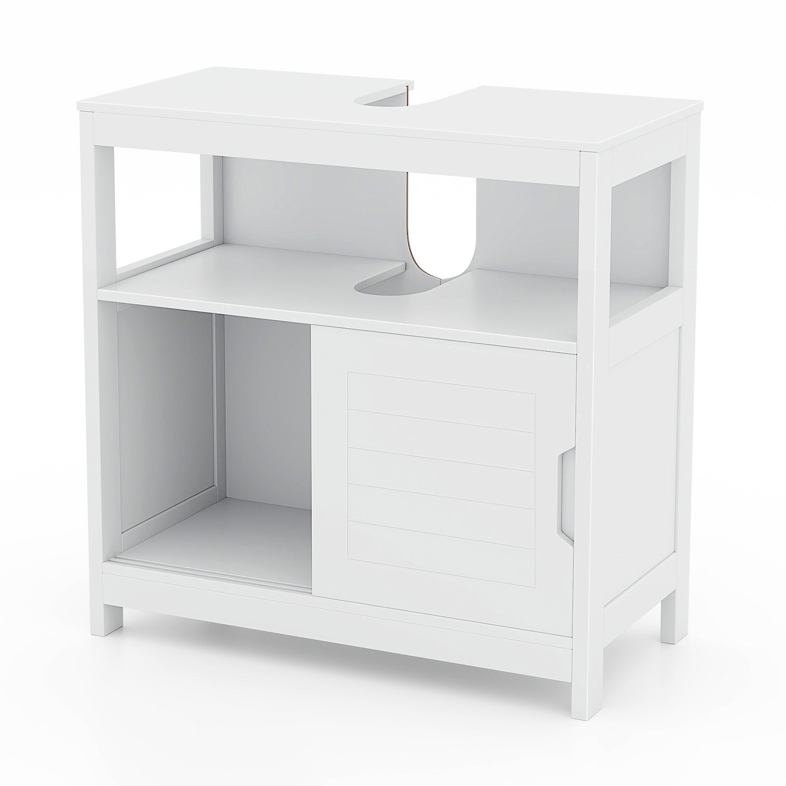 ● Space-saving Sink Cabinet: This vessel sink storage cabinet features a U-shaped cut-out which measures 3.5" × 8" × 8" (W × D). As such it fits neatly around most vessel sinks maximizing the unused space. Please measure your sink size before purchasing.