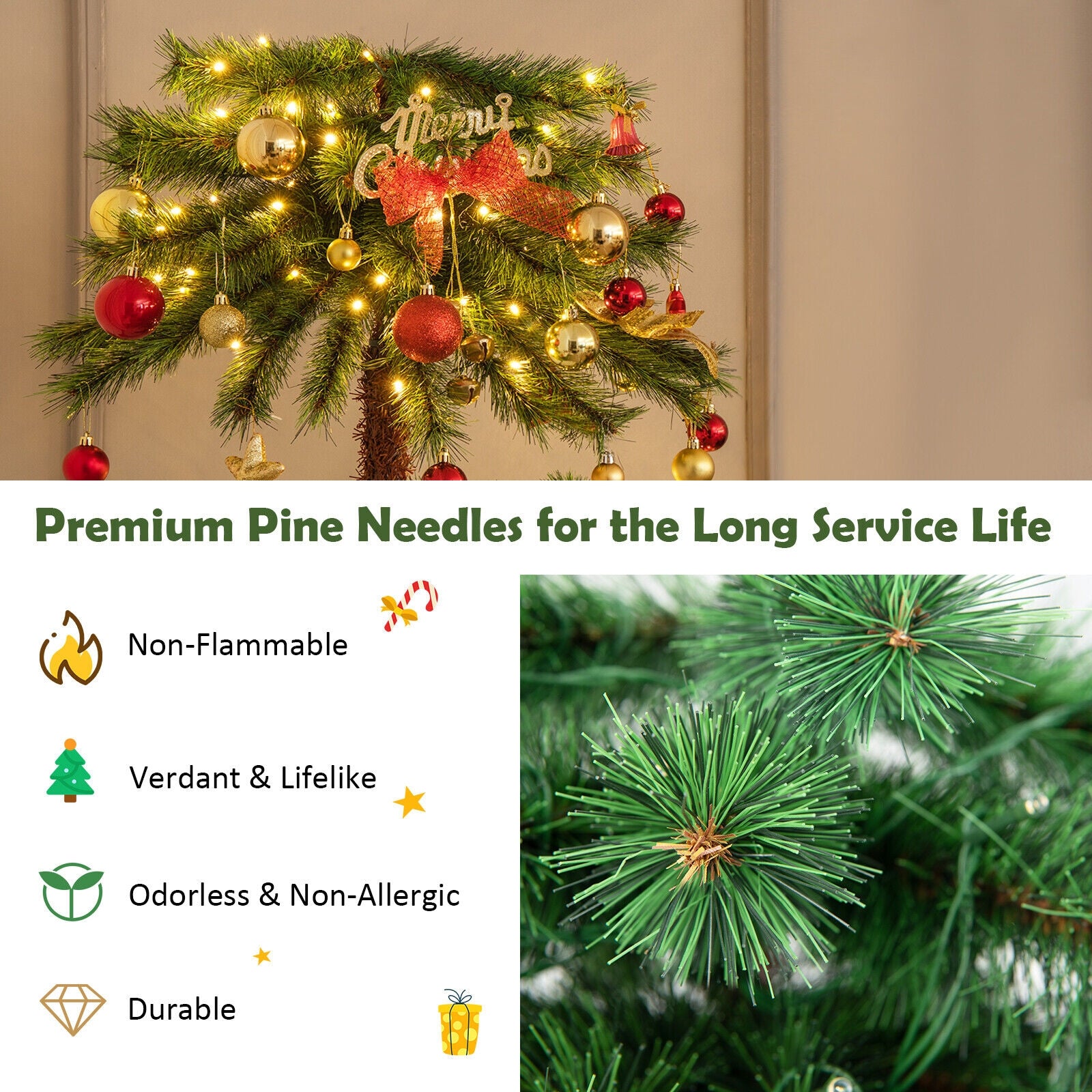 - The pine needles are non-flammable durable non-odor and non-allergic