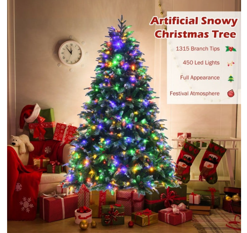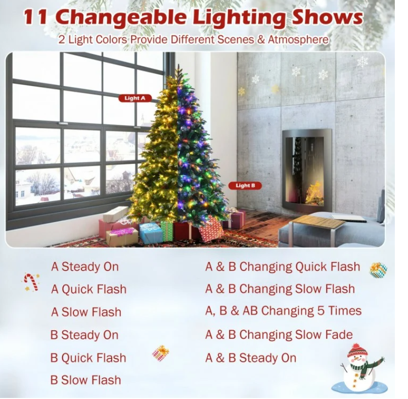 ● Enjoy Brilliant Lighting Show: There are 450/780 pre-strung bright LED lights on the vibrant Christmas tree, which offers home charming lighting shows with 11 flash modes. Also, 2 different lighting colors are available, so you can choose any one for romantic vibe adding.