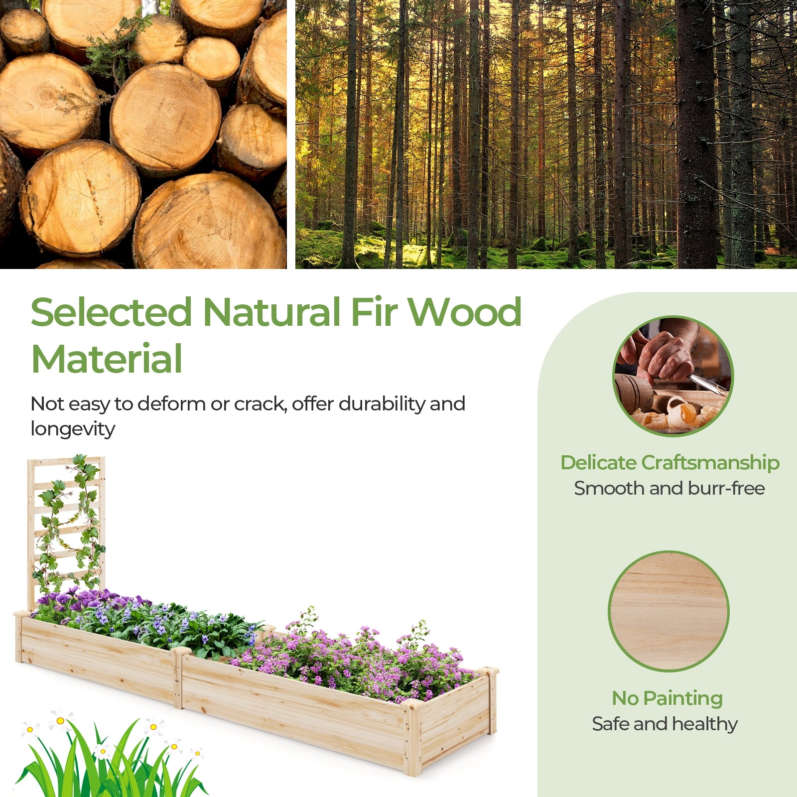 ● Spacious Planting Area with Trellis: The wooden raised garden bed comes with a large planting box with 2 compartments  providing ample space for your plants to thrive  such as flowers  herbs  vegetables  fruits  etc. And there exists a trellis for climbing vines to grow. You can also add decorations to it.