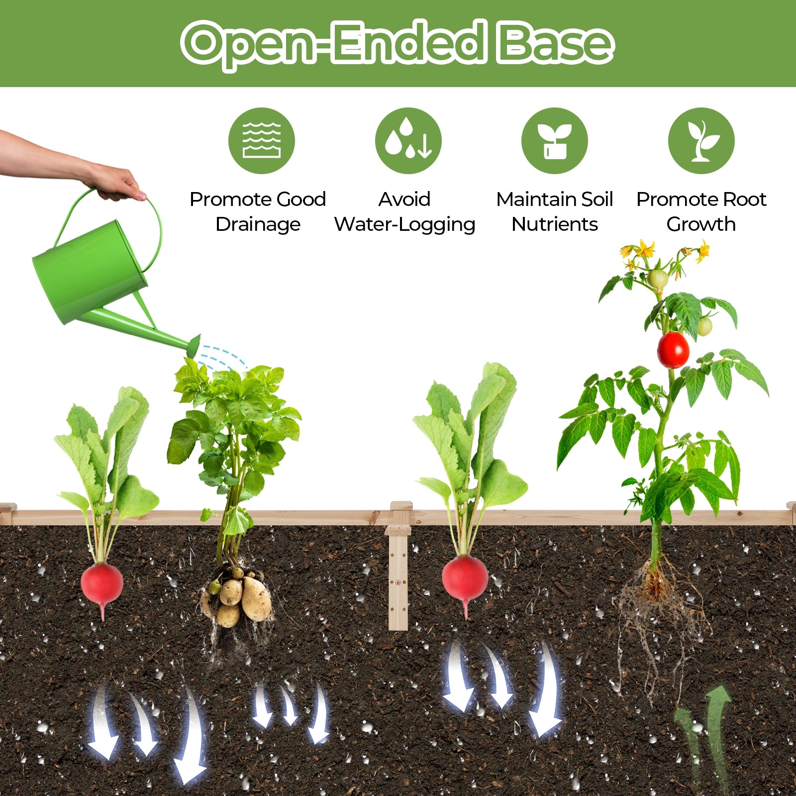 ● Naturally Durable Material: The raised garden bed is crafted with 100% natural fir wood  which is not easy to deform or crack  offering durability and longevity. Furthermore  the wood surface with no painting creates a safe and healthy growing environment.
