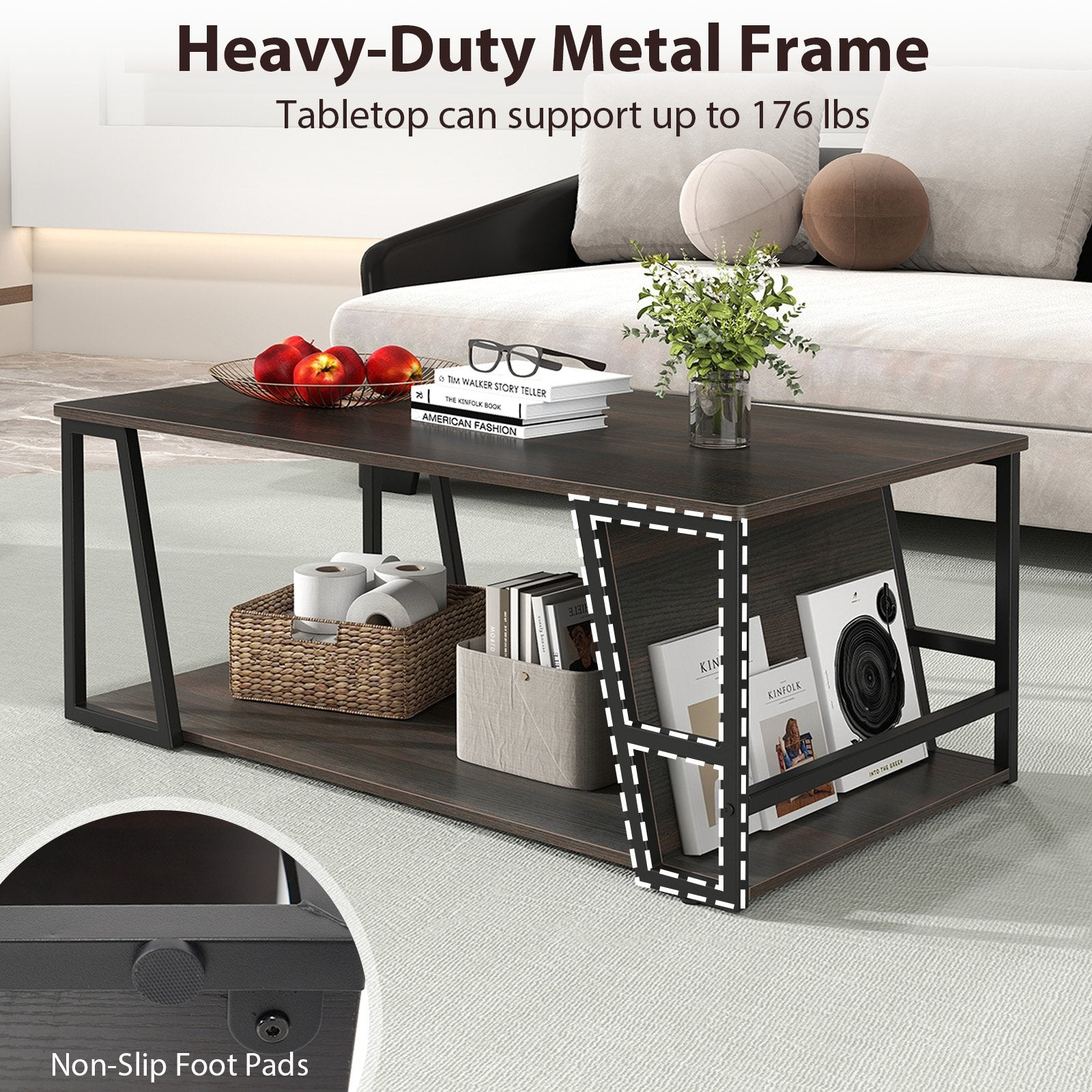 ● 2-tier coffee table provides ample storage to keep living room tidy